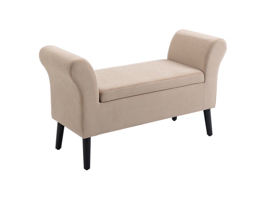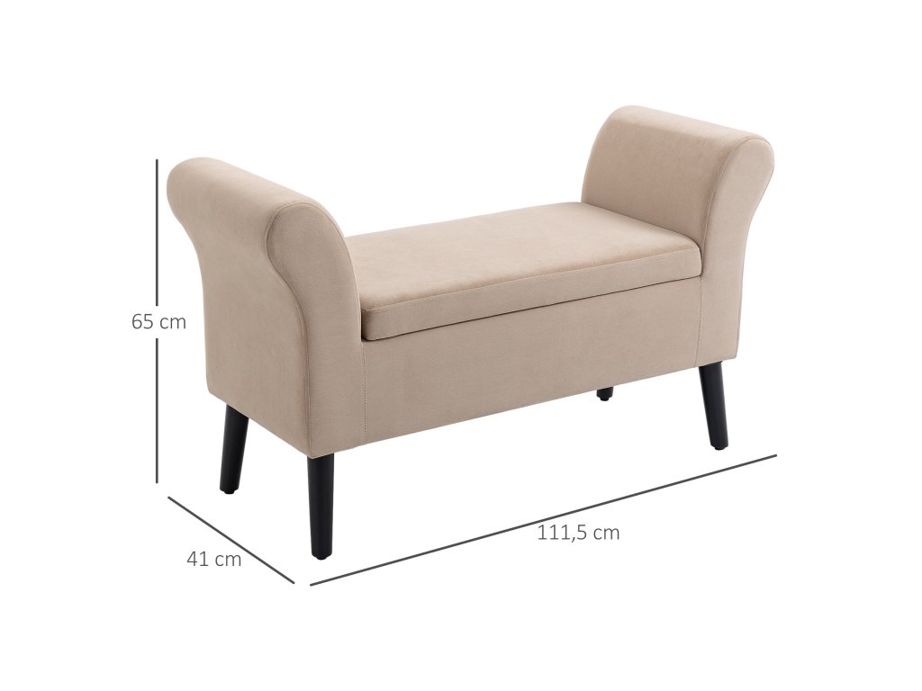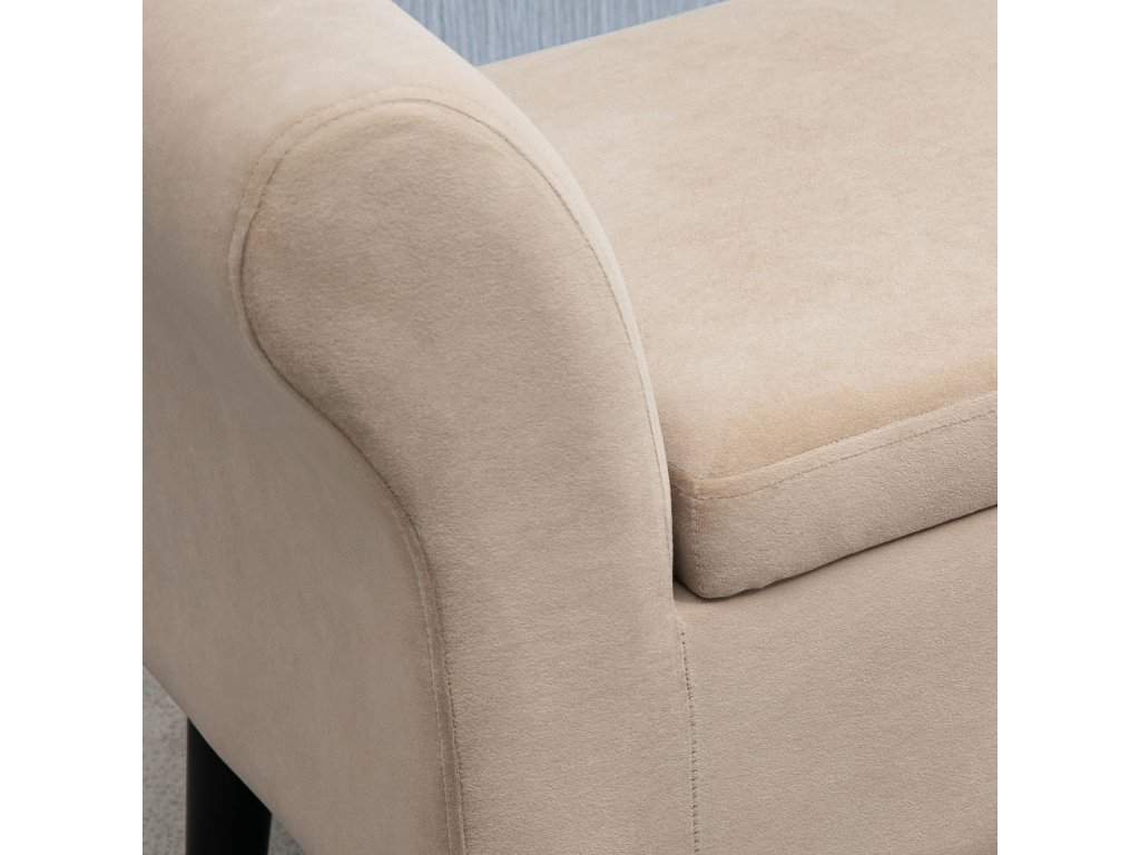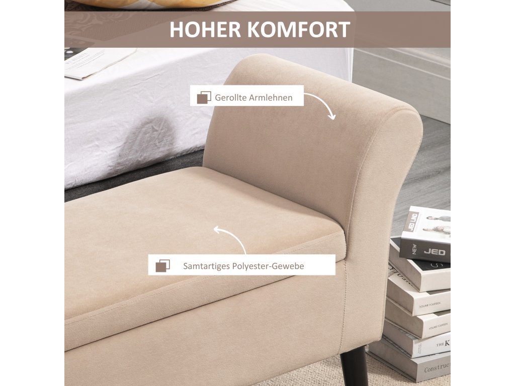 HOMCOM Čalouněná lavice s úložným prostorem, truhlicová lavice s područkami, výška sedáku 46 cm, sametový polyester, 111,5 x 41 x 65 cm, béžová barva