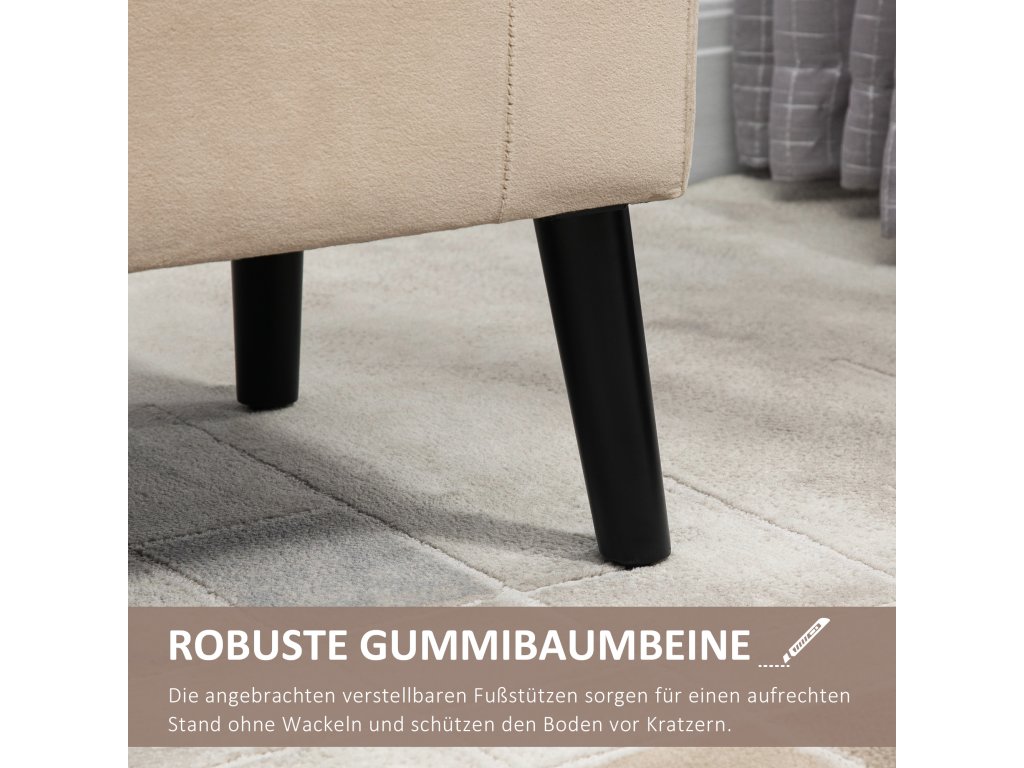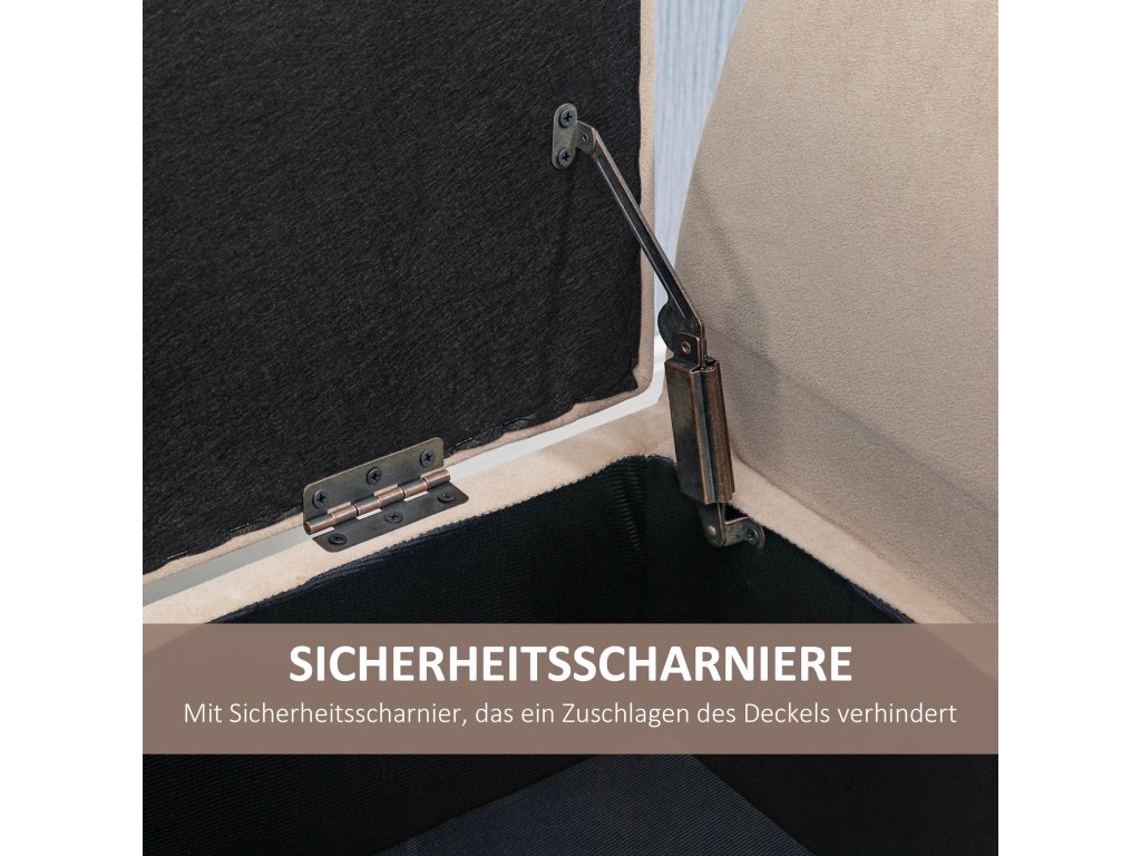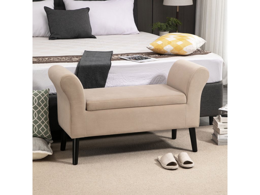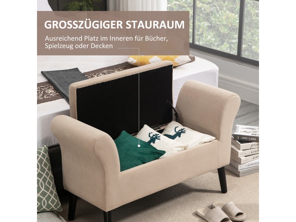 HOMCOM Čalouněná lavice s úložným prostorem, truhlicová lavice s područkami, výška sedáku 46 cm, sametový polyester, 111,5 x 41 x 65 cm, béžová barva