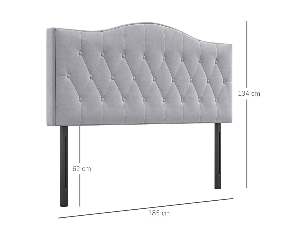 HOMCOM Čelo postele Čalouněné čelo postele Opěrka hlavy postele Čelo postele v šedé topolové sametové látce 185 x 8 x 134 cm