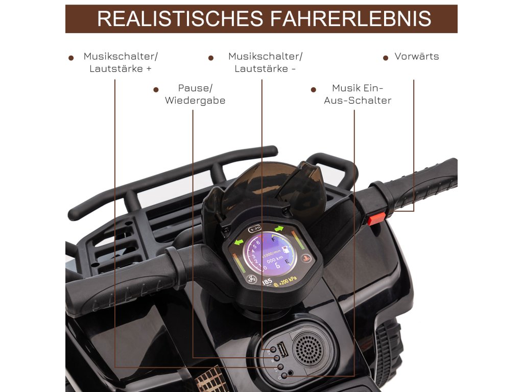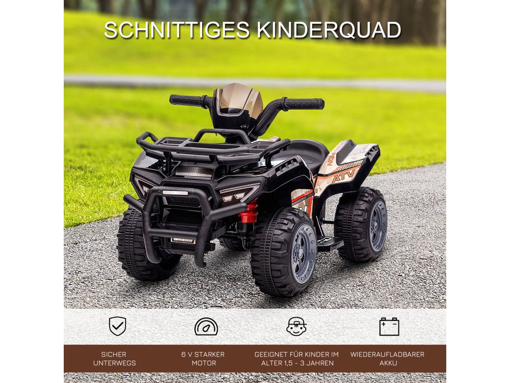 HOMCOM Dětská elektrická čtyřkolka 6V dětská čtyřkolka s funkcí jízdy vpřed, hudba, elektrická čtyřkolka pro děti 1,5-3 roky Černá