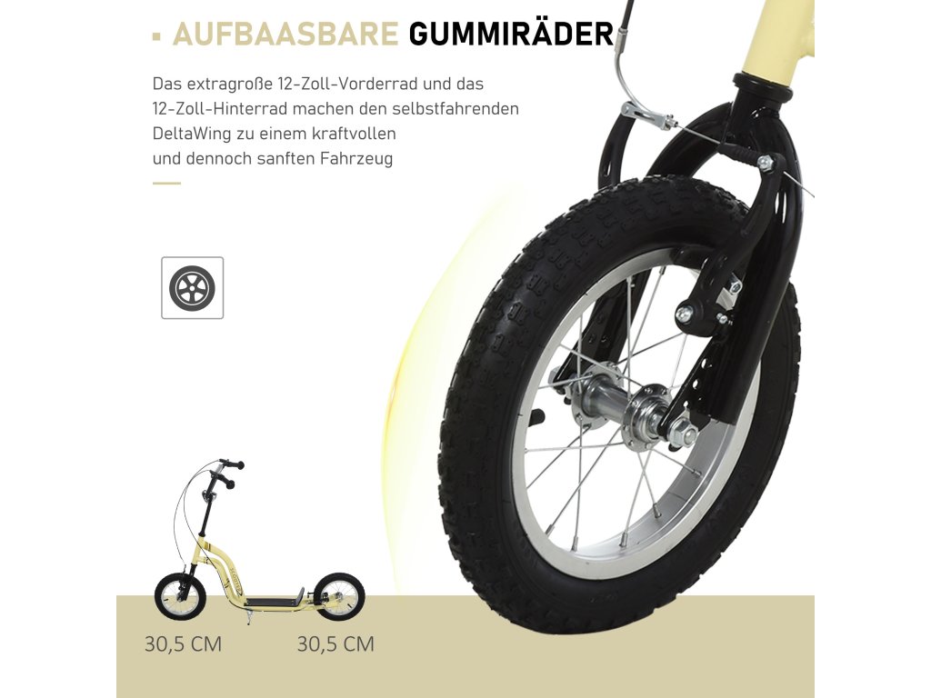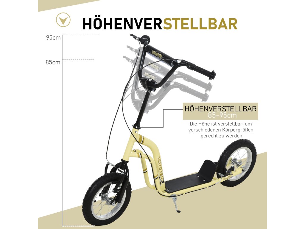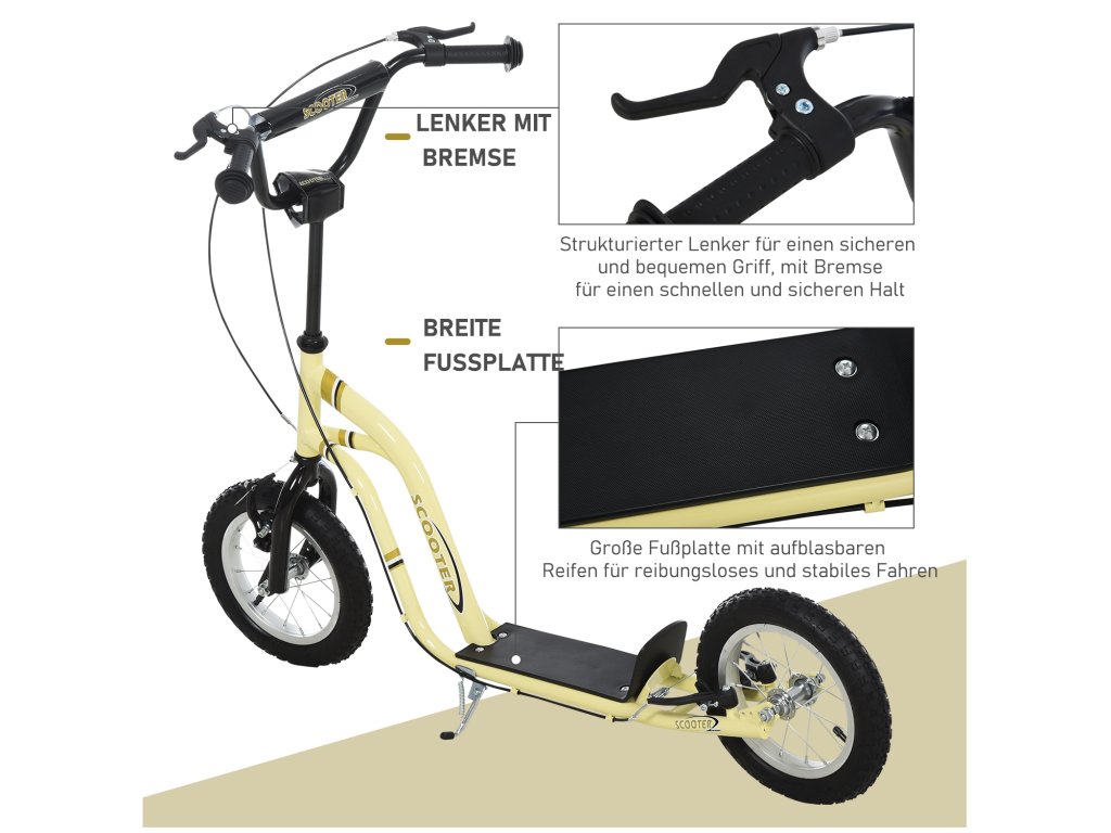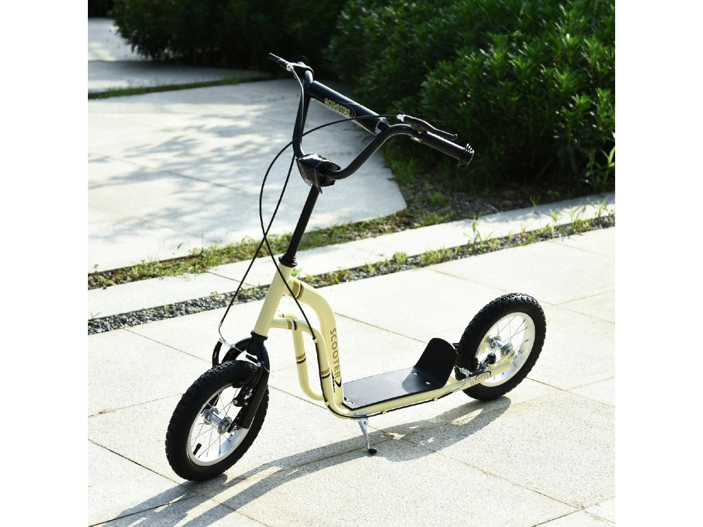 HOMCOM Dětská koloběžka od 5 let Koloběžka Dětská koloběžka Pedálová koloběžka Městská koloběžka Dětská koloběžka Kickboard s pneumatikami 12 palců gumy Hliníková béžová 120 x 58 x 85-95 cm