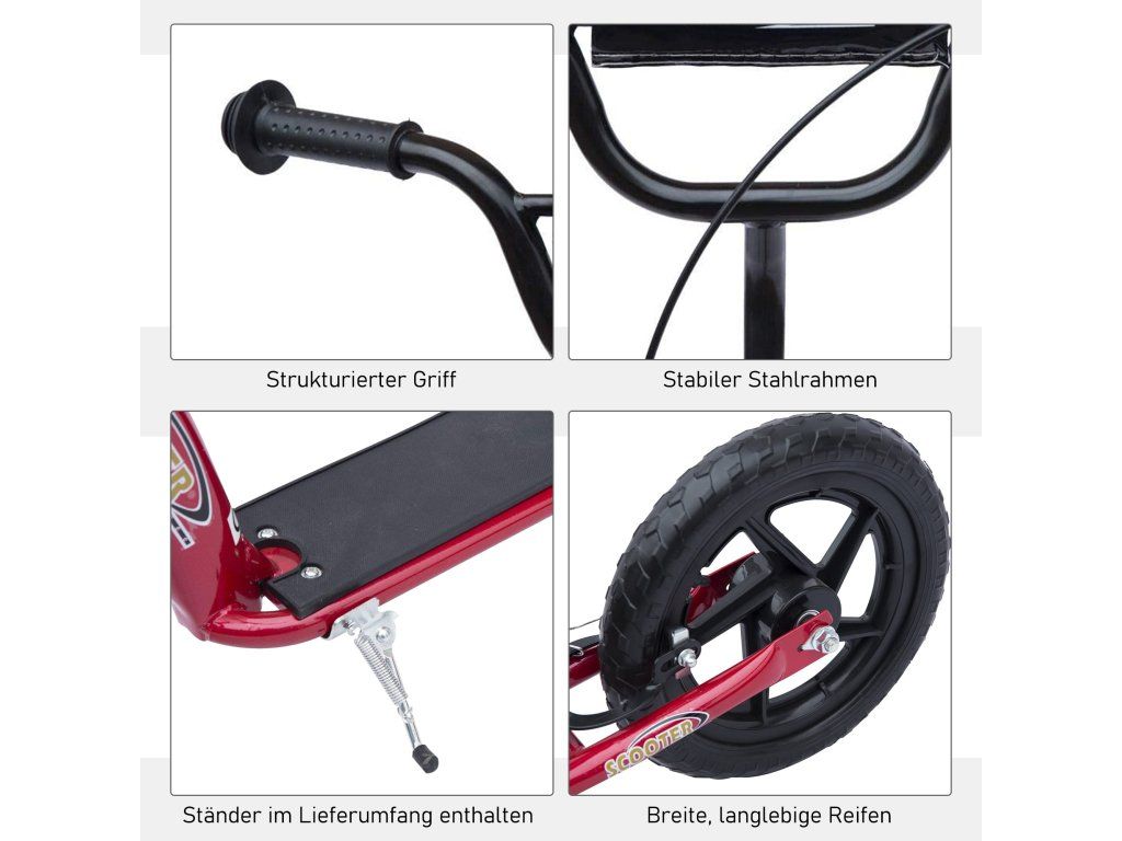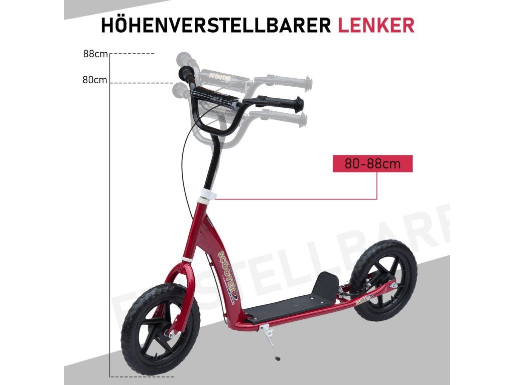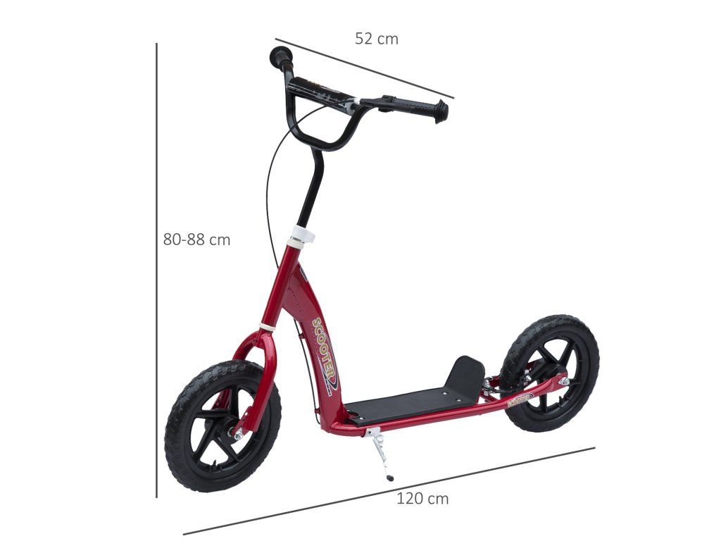 HOMCOM Dětská koloběžka se zadní brzdou Koloběžka 12 palcová koloběžka Koloběžka Městská koloběžka pro děti Kickboard Výškově nastavitelný Ocel EVA Červená 120 x 52 x 80-88 cm