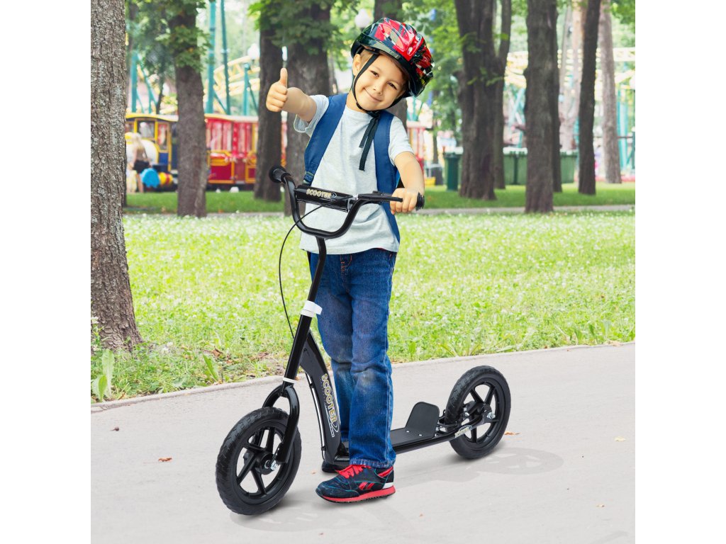 HOMCOM Dětská koloběžka se zadní brzdou Koloběžka 12 palcová koloběžka Koloběžka Městská koloběžka pro děti Výškově nastavitelná deska Ocel EVA černá 120 x 52 x 80-88 cm