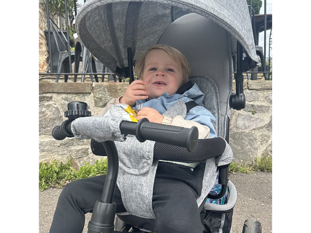 - Odnímatelné části: Ochranná stříška a nastavitelná rodičovská rukojeť na dětské tříkolce pro optimální ochranu před povětrnostními vlivy a kontrolu.