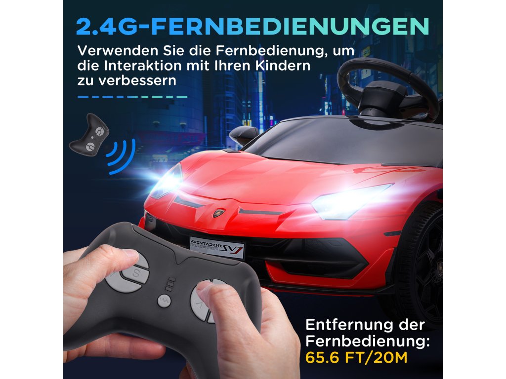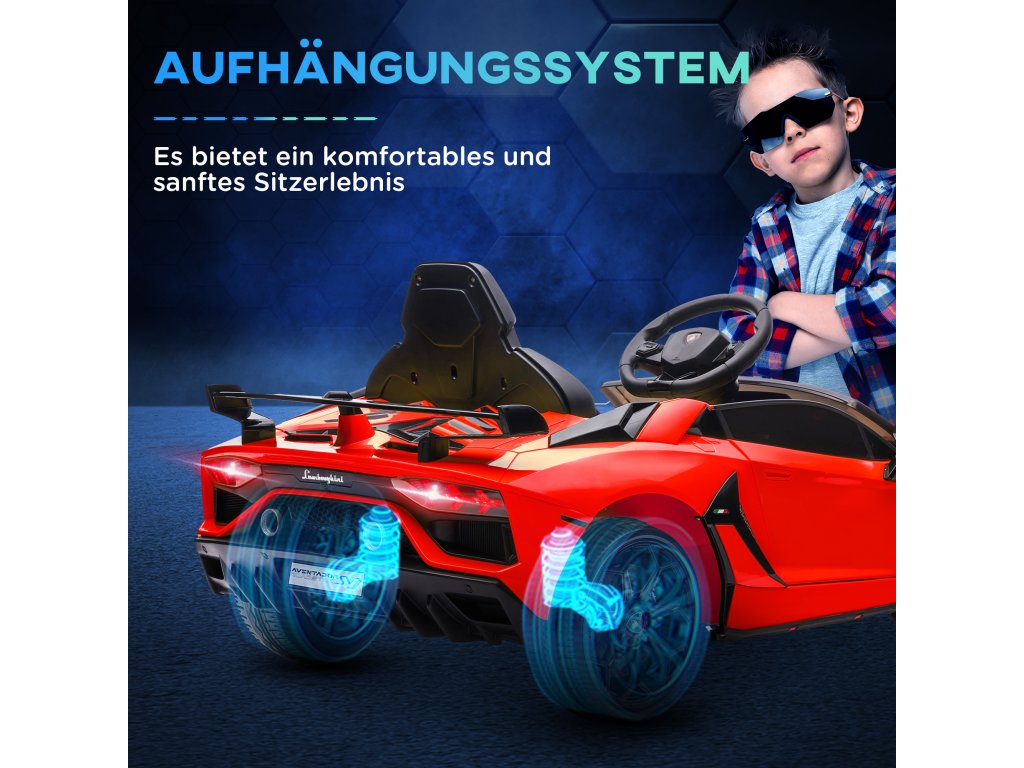 Zažijte prvotřídní potěšení z jízdy s naším elektrickým dětským vozidlem v licencovaném designu Lamborghini Aventador SVJ Roadster. Toto dětské elektrické autíčko nejen rozbuší dětská srdíčka, ale také upoutá pozornost všech. S vestavěnou hudbou, silným klaksonem a působivými světelnými efekty vytváří elektrizující atmosféru. Jeho elegantní a trendy design z něj dělá první volbu pro malé dobrodruhy.
