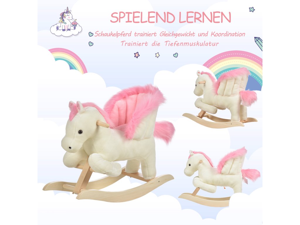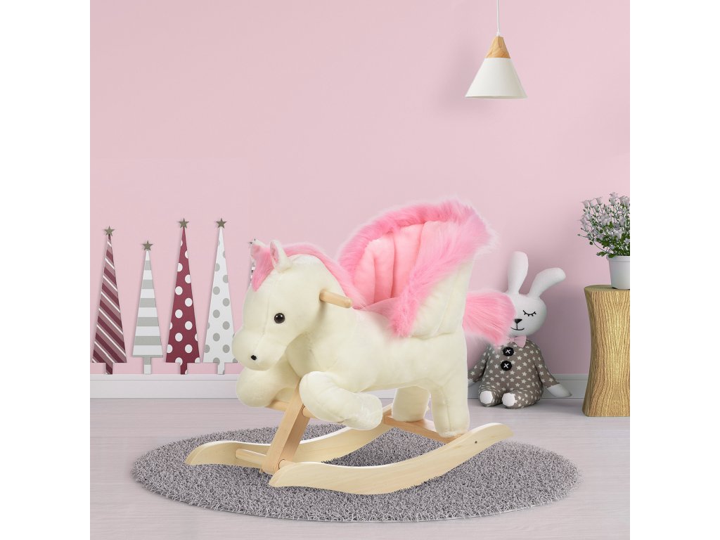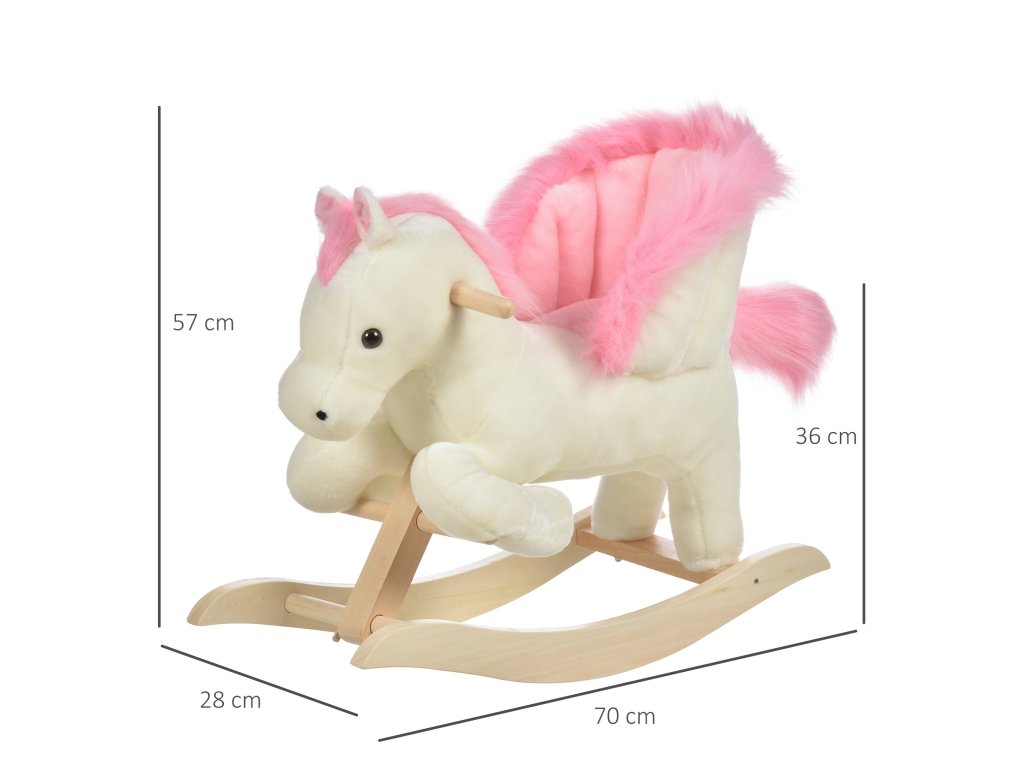 HOMCOM Dětský houpací kůň Dětský houpací kůň se zvířecími zvuky Hračka na rukojeti pro 18-36 měsíců Plyšová bílá+růžová 70 x 28 x 57 cm