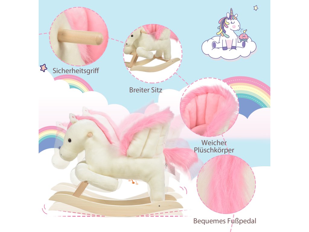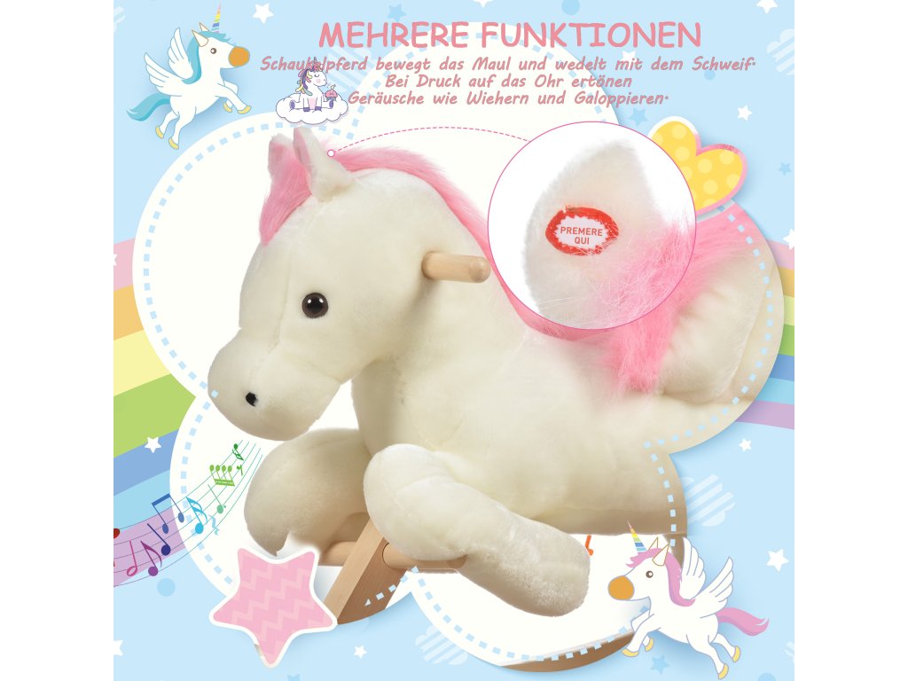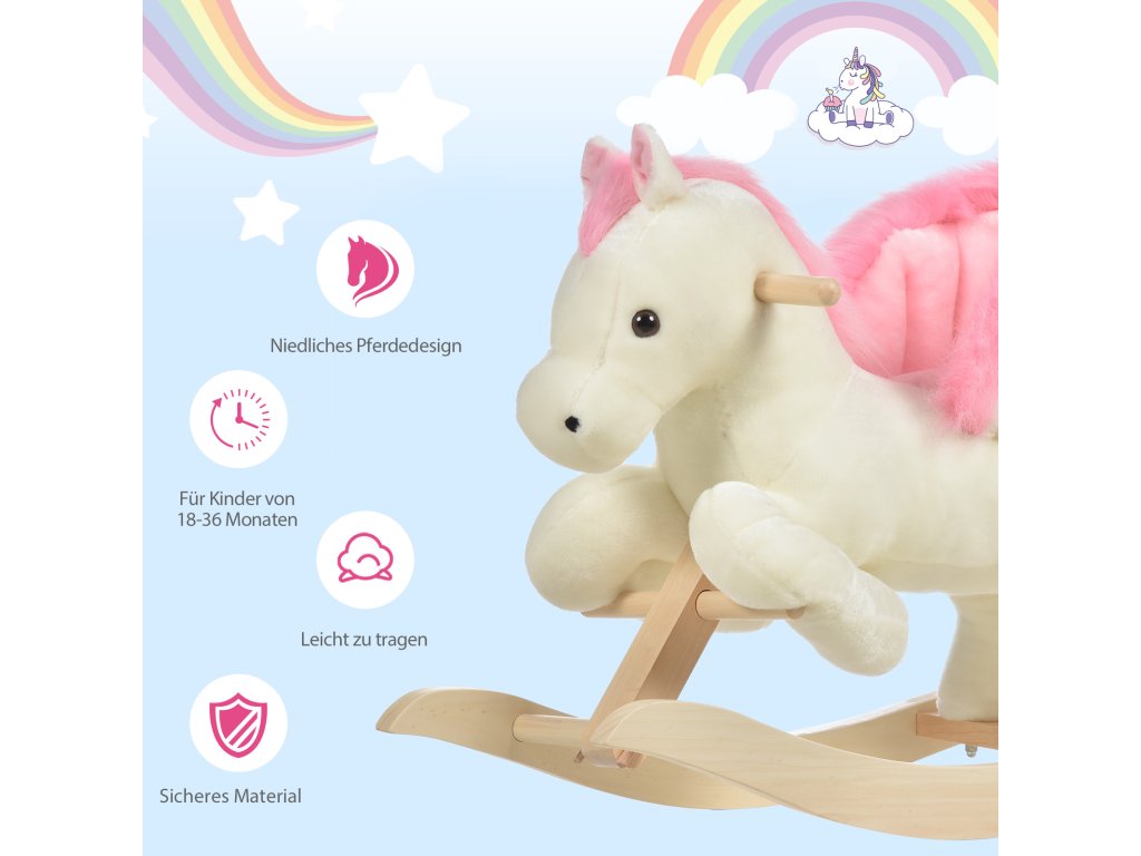 Vydejte se ke hvězdám na roztomilém koni! Naše tradiční plyšová houpací hračka promění váš domov v kouzelnou říši divů, kde je všechno možné! Po stisknutí uší uslyšíte realistické zvuky řehtání. Měkké, příjemné plyšové tělo s pohodlným, širokým sedlem je ideální pro kouzelné dobrodružství. Neváhej a kup si ho!