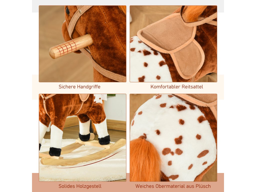 HOMCOM Dětský houpací kůň Houpací zvířátko Houpací hračka hnědá 74x28x65cm