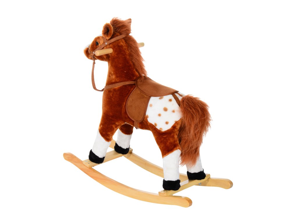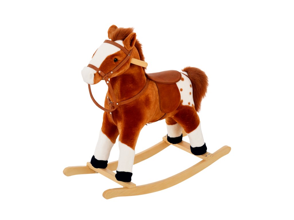 - Zvuk zvířátka: Po jemném stisknutí ucha začne houpací koník řehtat. Malý zvuk pro velkou radost! Baterie jsou samozřejmě součástí balení.