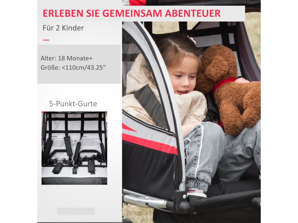 - ✔ Konstrukce 2 v 1: kočárek a přívěs pro děti v jednom