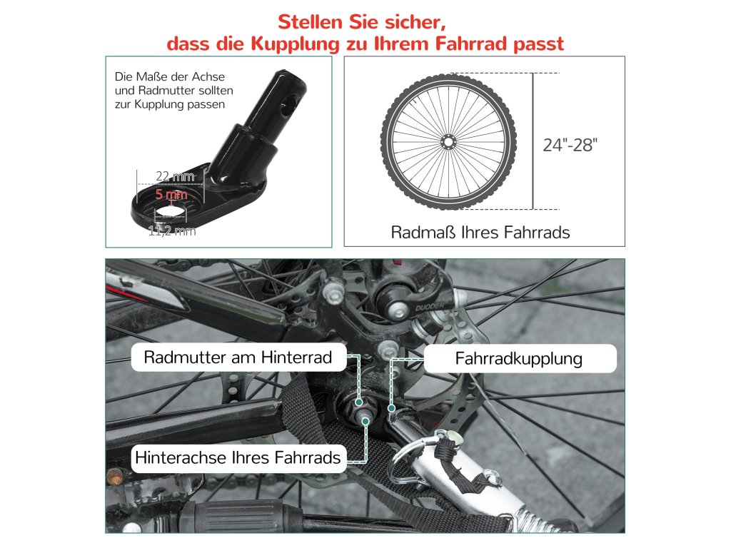 - ✔ Poznámka:1, Přívěs je vhodný pro kola o velikosti 24" až 28"