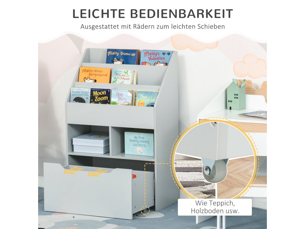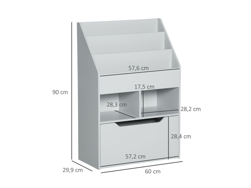 HOMCOM Dětský regál se zásuvkou, regál s přihrádkami, 60 x 29,9 x 90 cm, šedý