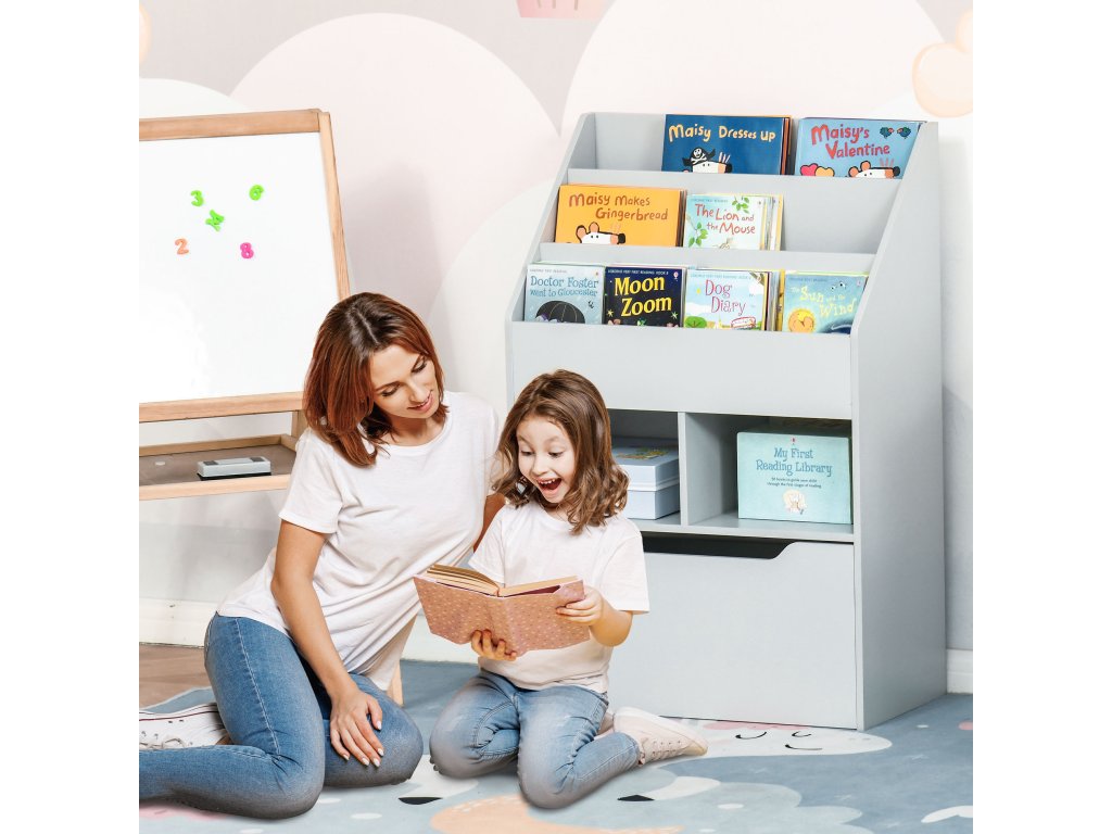 - Dostatek úložného prostoru: Tento dětský regál je vybaven třípatrovou policí na knihy, dvěma úložnými přihrádkami a velkou zásuvkou pro ukládání knih, časopisů, hraček nebo předmětů denní potřeby atd.