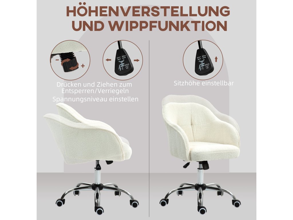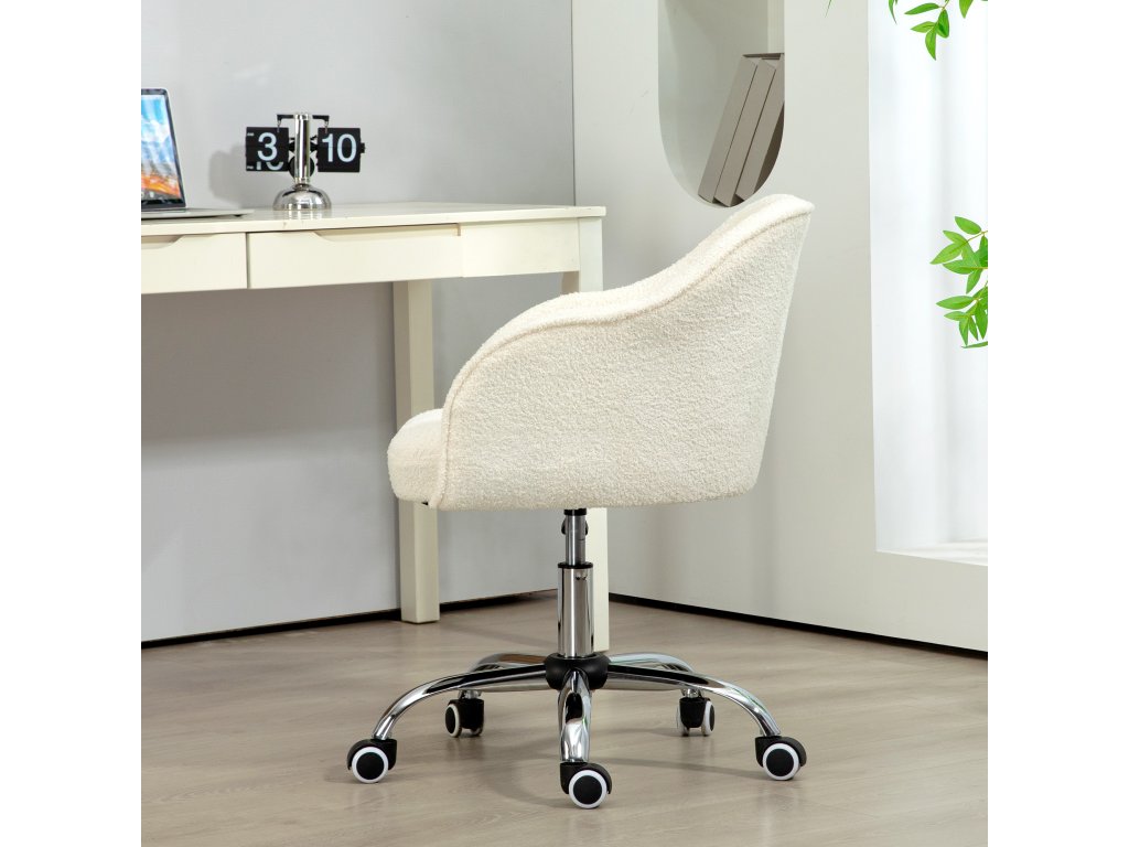 HOMCOM Domácí kancelářská židle, ergonomická kancelářská židle s houpací funkcí, vzhled teddy velvet 56 x 61 x 86 cm krémově bílá