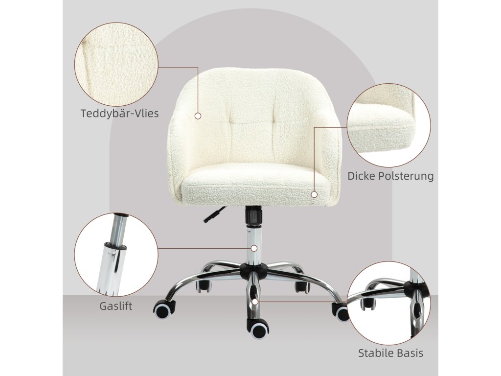 - Křeslo s nadýchanou vanou: Měkké, příjemné a jedinečné otočné křeslo, ideální do domácí kanceláře. Plyšová struktura z umělého rouna nabízí vynikající pocit na kůži, takže je tato kancelářská židle obzvláště pohodlná pro dlouhé pracovní hodiny.