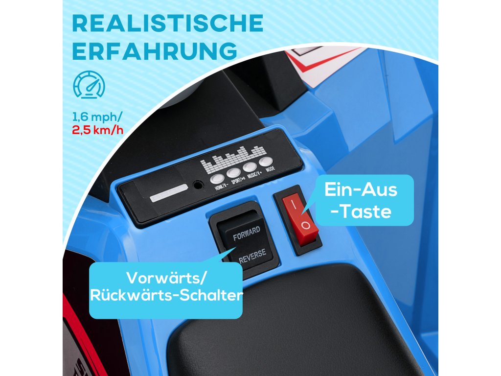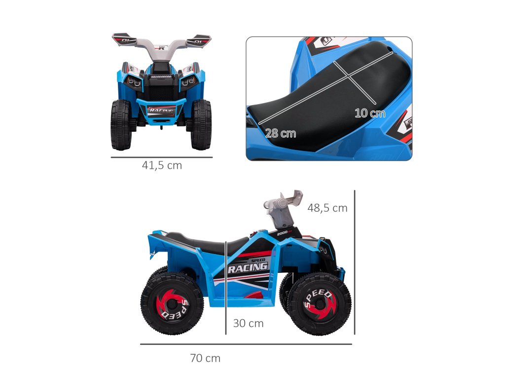 HOMCOM Elektrická dětská čtyřkolka, 2,5 km/h, rychlost vpřed a vzad, pro 18-36 měsíců, modrá