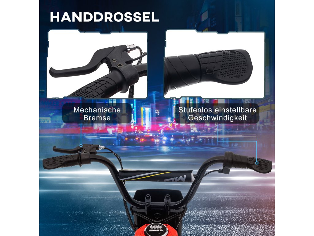 - Maximální kontrola a bezpečnost: Díky ručnímu plynu pro variabilní rychlost, mechanické brzdové páce a parkovací brzdě nabízí naše dětská motorka přesnou kontrolu a maximální bezpečnost pro malé jezdce