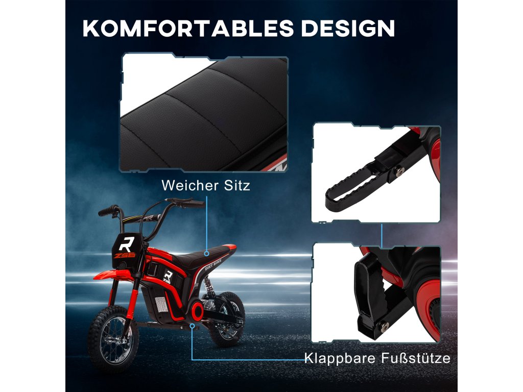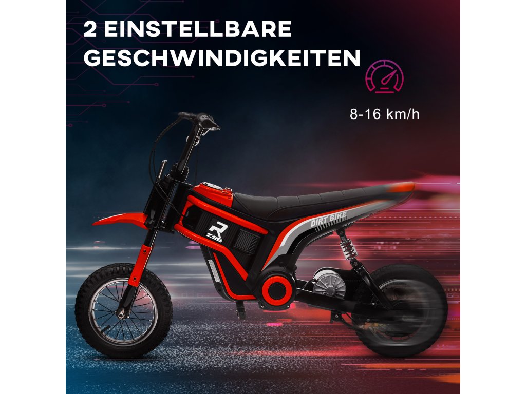 Zažijte dobrodružství v přírodě jako nikdy předtím! Elektrická motorka HOMCOM pro děti od 8 do 12 let vás nadchne svým výkonným 24V motorem a dvěma nastavitelnými rychlostmi (8 a 16 km/h). Až 30 minut zábavy při jízdě v jakémkoli terénu díky robustnímu kovovému rámu, kolům tlumícím nárazy a manuálnímu plynu. Integrovaná hudba na dětské motorce poskytuje další zábavu při jízdě. Rozprouděte fantazii svého dítěte a vytvořte nezapomenutelné vzpomínky!