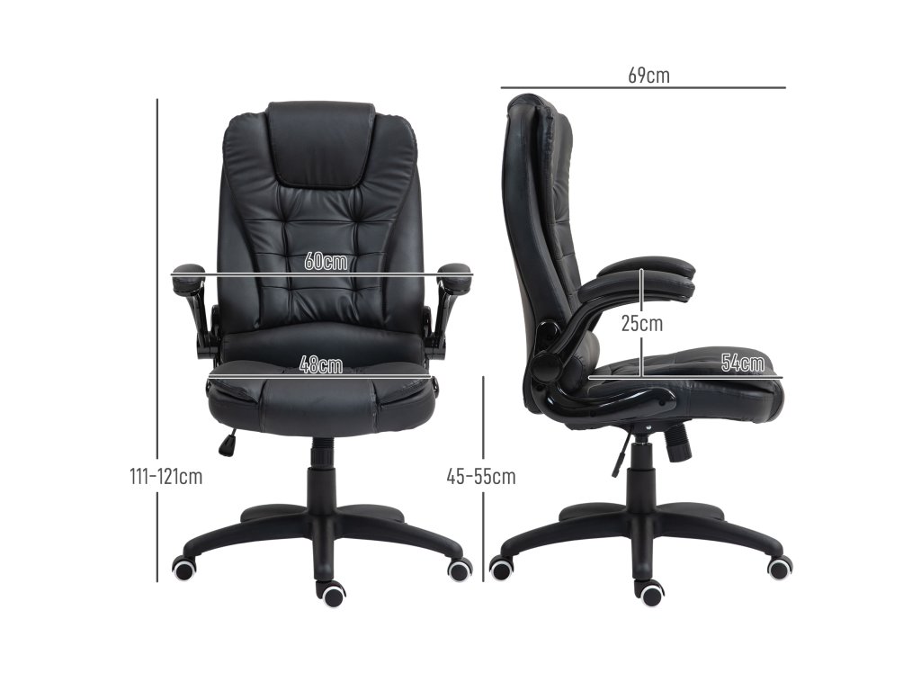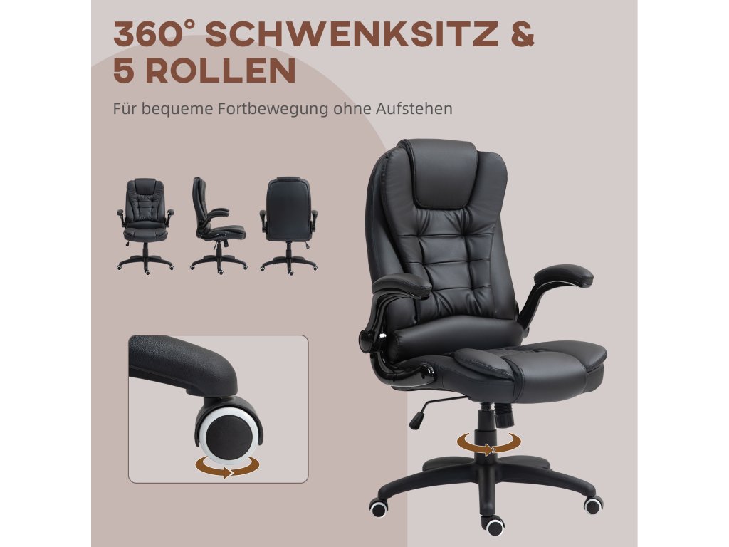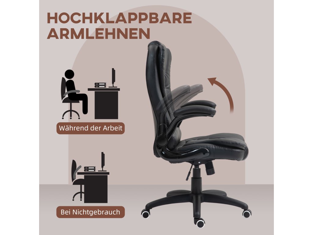 HOMCOM Ergonomická kancelářská židle, sklopné područky, funkce naklápění, černá barva