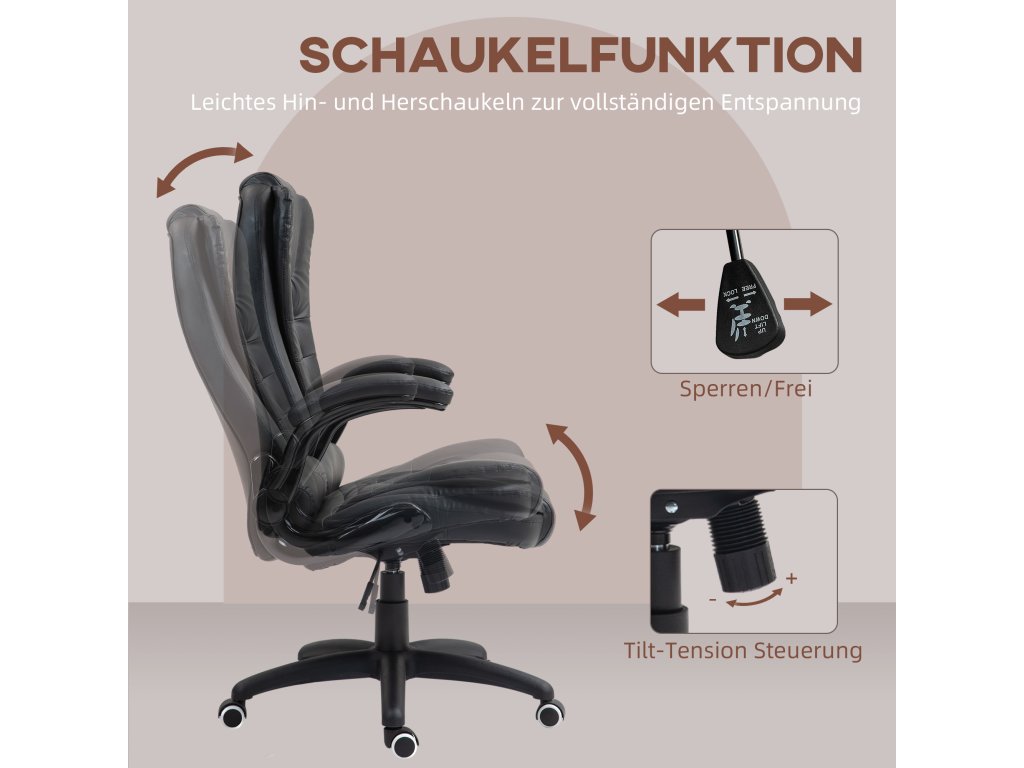 Dodejte svému pracovišti nádech elegance a pohodlí s manažerskou židlí HOMCOM. Snadno udržovatelný potah z umělé kůže kancelářské židle zajišťuje snadné čištění, zatímco nastavitelná výška sedáku 45 až 55 cm umožňuje přizpůsobení. Vychutnejte si flexibilitu houpací funkce a otočného sedáku, které vám nabízejí dostatek volnosti pohybu. Ideální pro vaši domácí kancelář nebo pracovnu - pro produktivní práci ve stylovém prostředí.