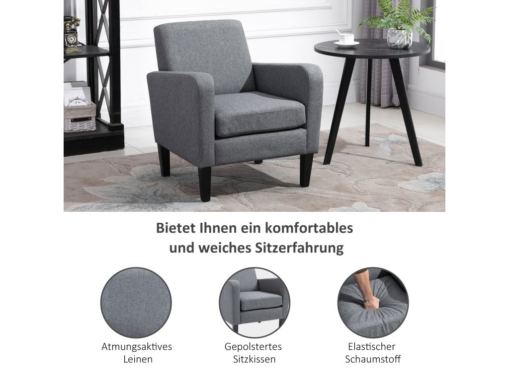 Elegantní a moderní jednolůžkové křeslo HOMCOM zajistí ve vaší domácnosti čistou relaxaci. Potah jednolůžkového křesla ve vzhledu lnu a elegantní gumové nožky nabízejí nejen pohodlí, ale také vytvářejí stylové akcenty. Ergonomicky tvarovaný, měkce čalouněný sedák, prohnuté područky a vysoké opěradlo jednoduchého křesla přímo vybízejí k dlouhým a příjemným hodinám!