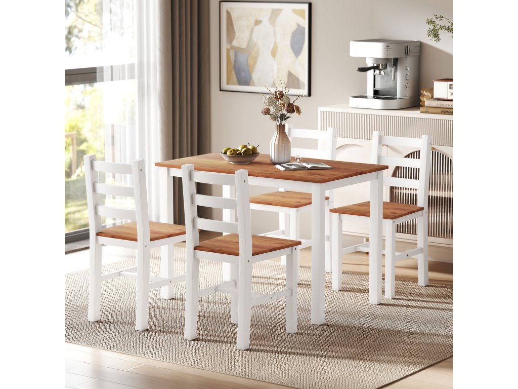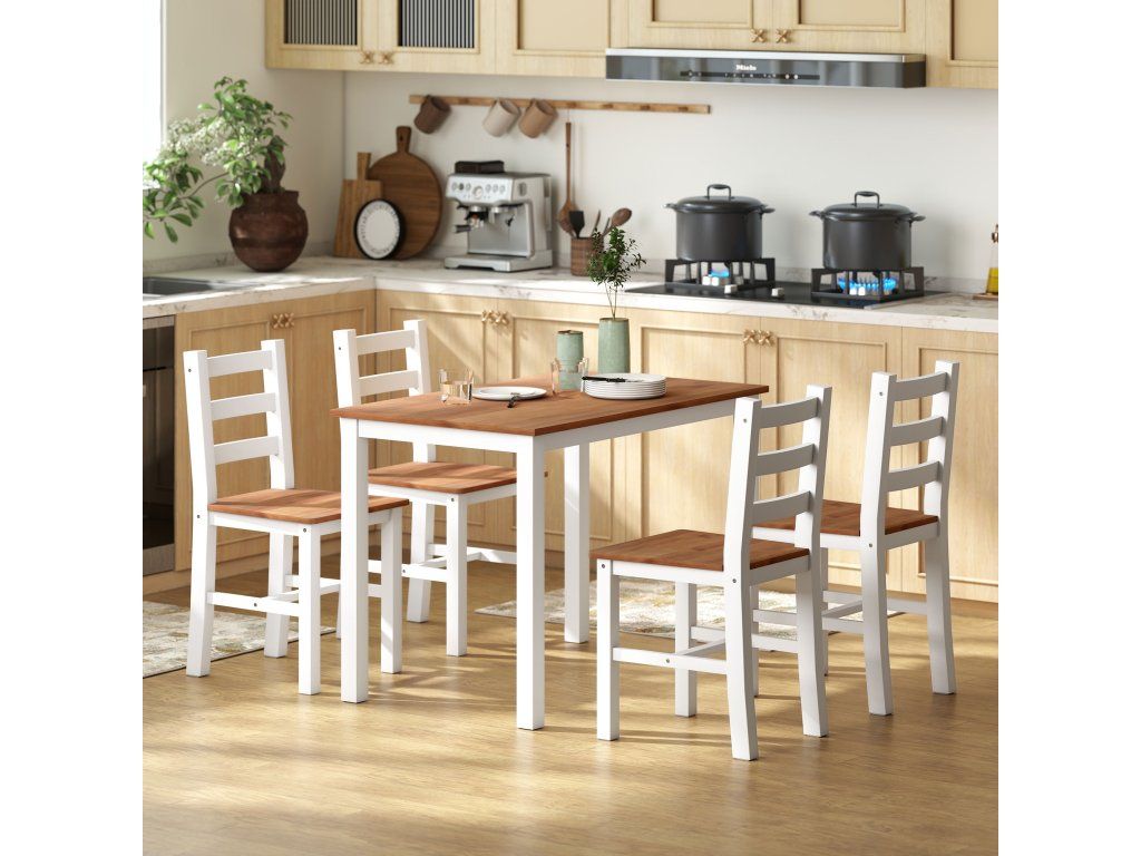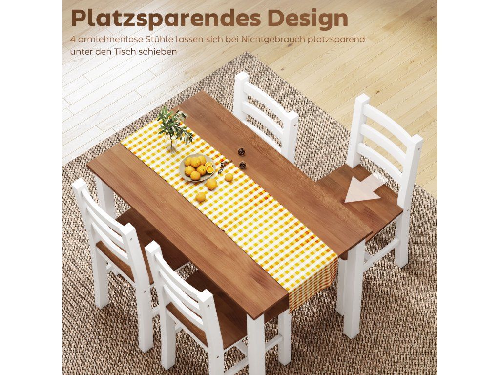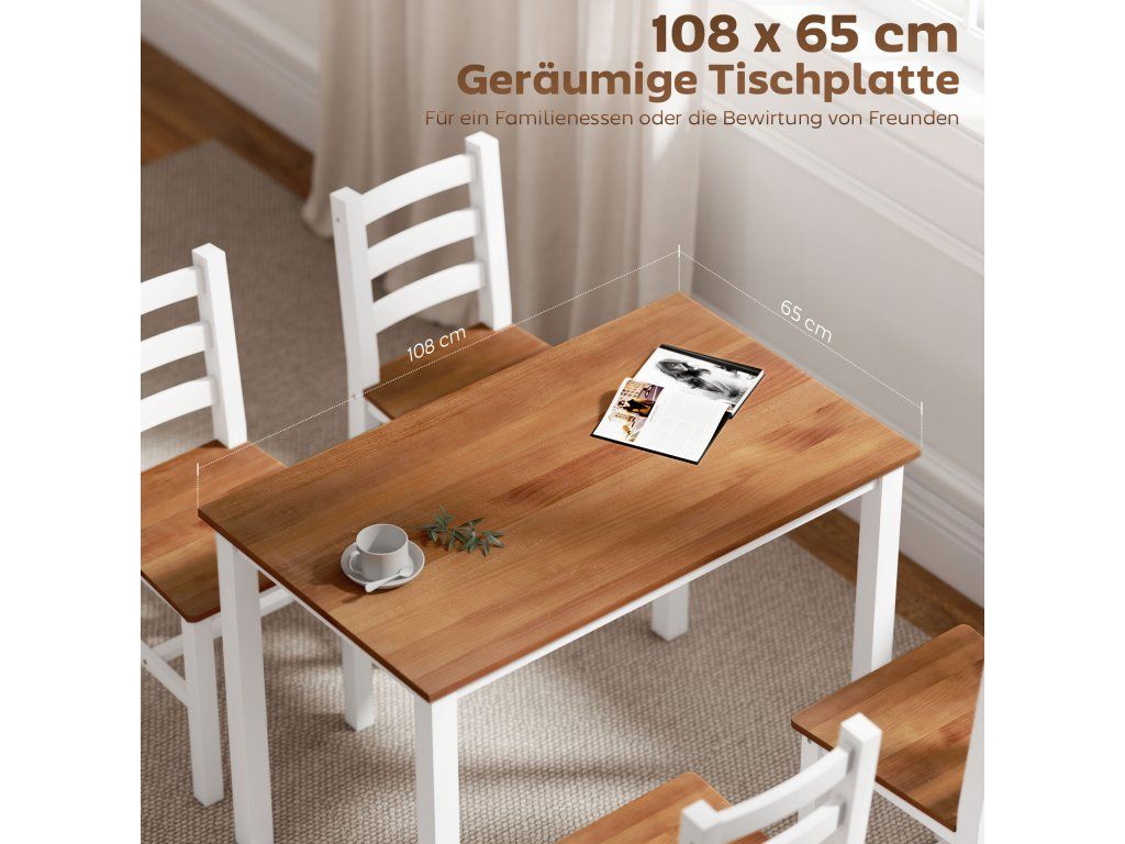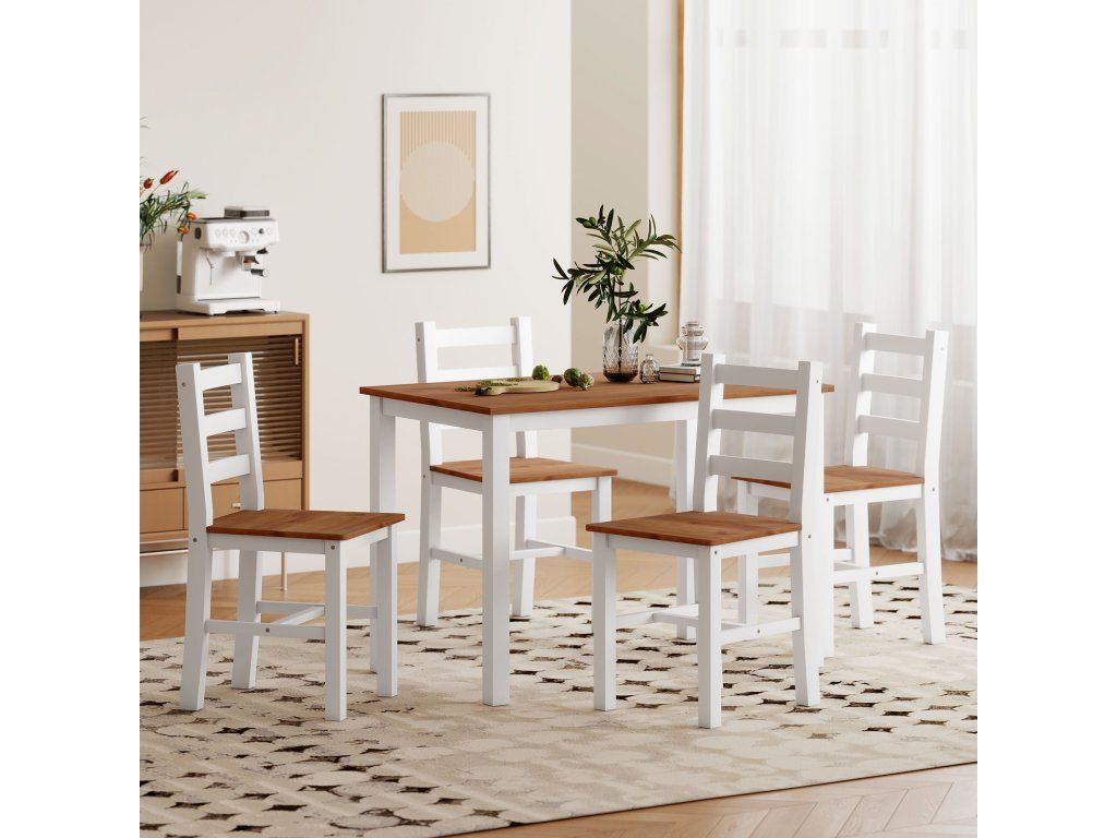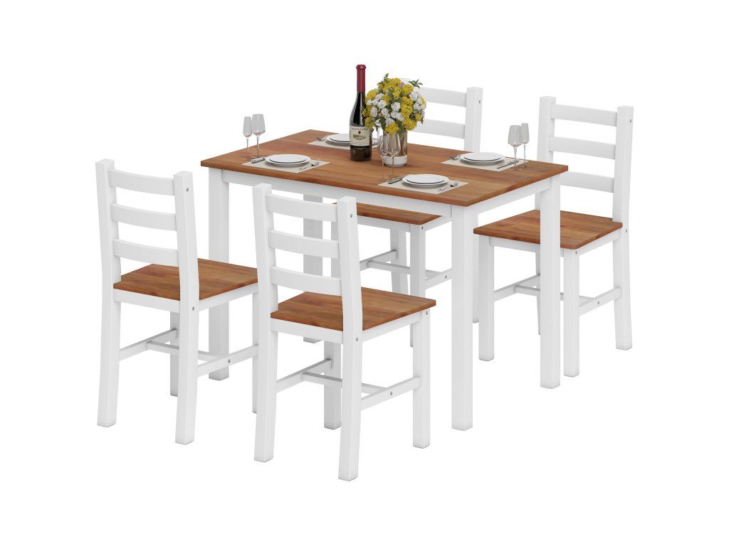 HOMCOM Jídelní set, jídelní stůl, 4 židle, jídelní set, borovice, hnědá+bílá