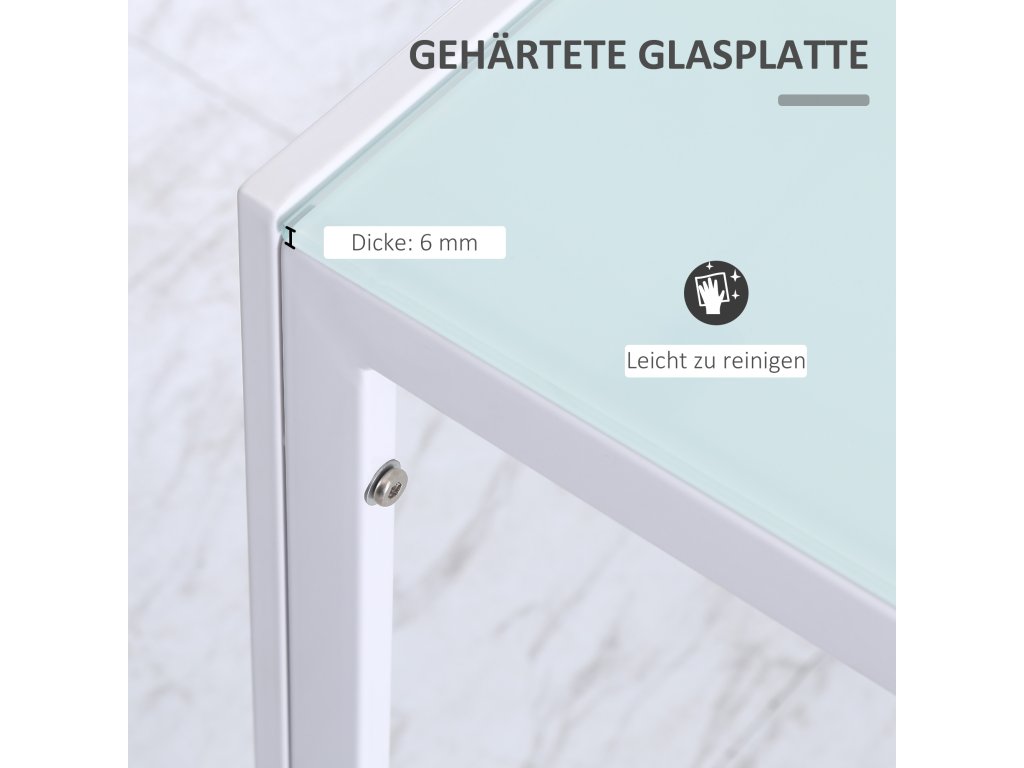 Zlepšete svůj zážitek ze stolování s jídelním stolem pro 4 osoby od společnosti HOMCOM. Stůl s deskou z tvrzeného skla vyzařuje moderní eleganci a je ideální pro stolování a společenské akce. Robustní kovová konstrukce zaručuje odolnost a stabilitu, zatímco velkorysý design vybízí ke společnému stolování. Obdélníkové nohy zajišťují bezpečné postavení a jsou opatřeny plastovými kluzáky šetrnými k podlaze. Okořeňte každé jídlo tímto sofistikovaným kuchyňským stolem.