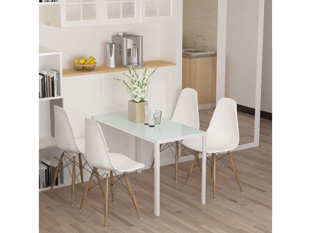 - Deska stolu z tvrzeného skla: Dodejte svému jídelnímu prostoru moderní atmosféru s elegantním vzhledem. Můžete si být jisti, že máte stabilní a bezpečný povrch pro vychutnávání jídla a nápojů