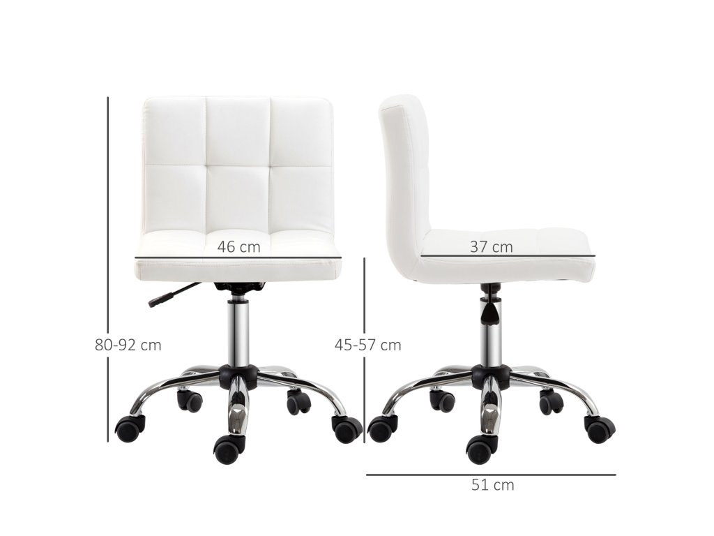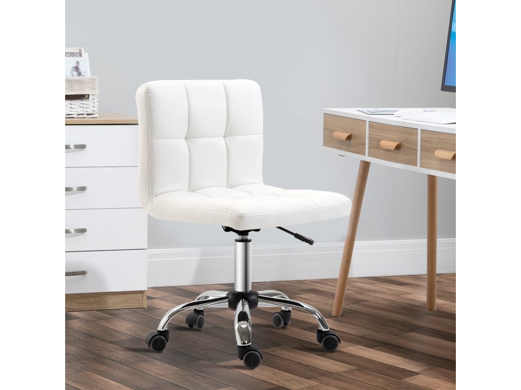 HOMCOM Kancelářská židle, otočná židle, koženka, ocelová konstrukce, 5 koleček, čalouněná, bílá