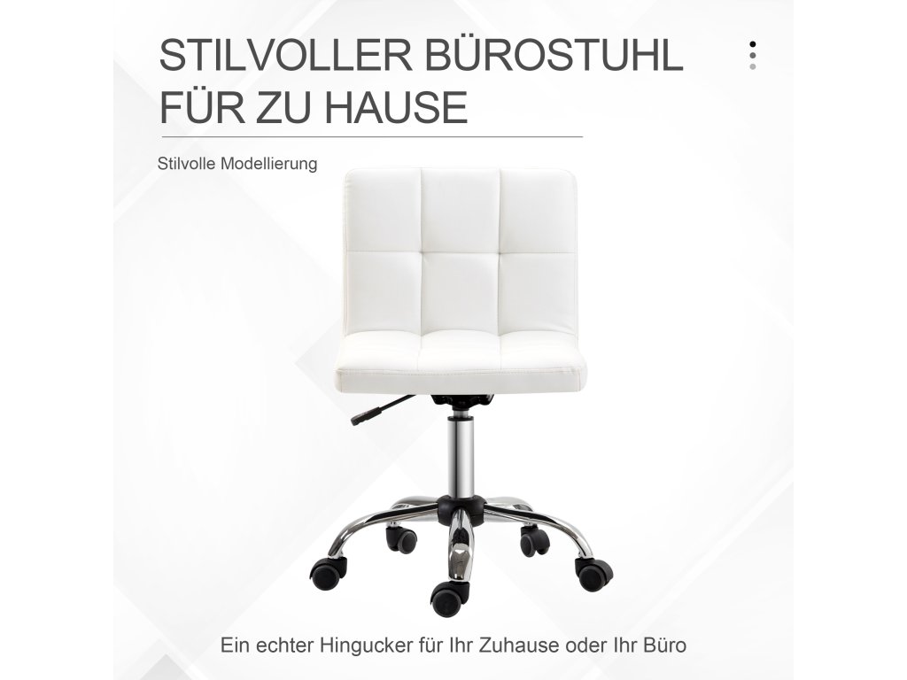 - Minimalistický design: Elegantní kombinace pozinkované oceli a bílé umělé kůže dodává této kancelářské židli s kolečky sofistikovaný vzhled. Ideální pro dodání stylu vaší kanceláři nebo pracovně.