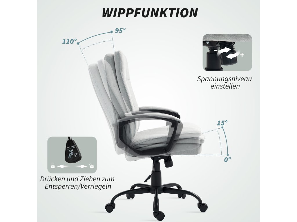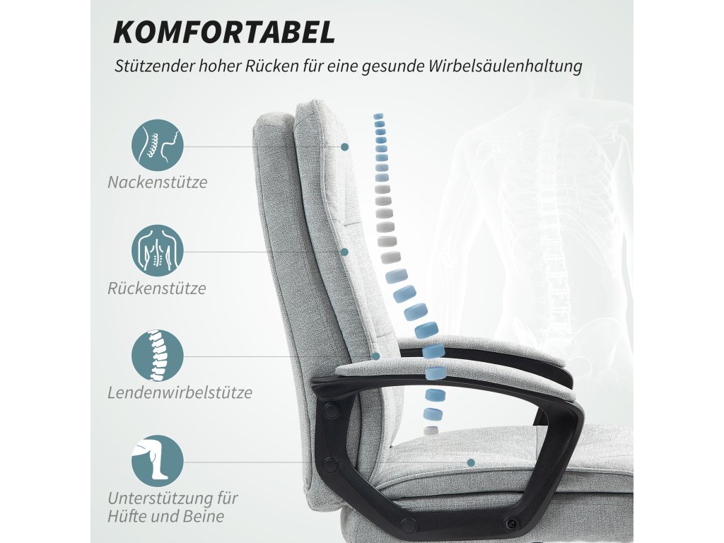 HOMCOM Kancelářská židle, pracovní židle, funkce náklonu, výškově nastavitelná, do 120 kg, šedá