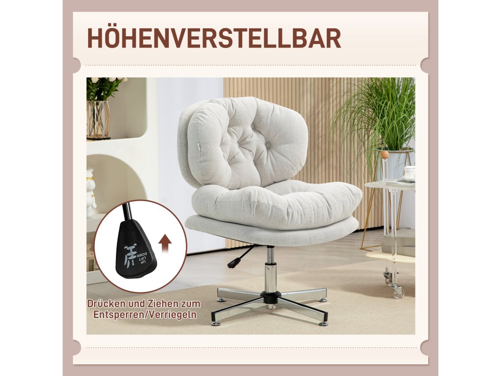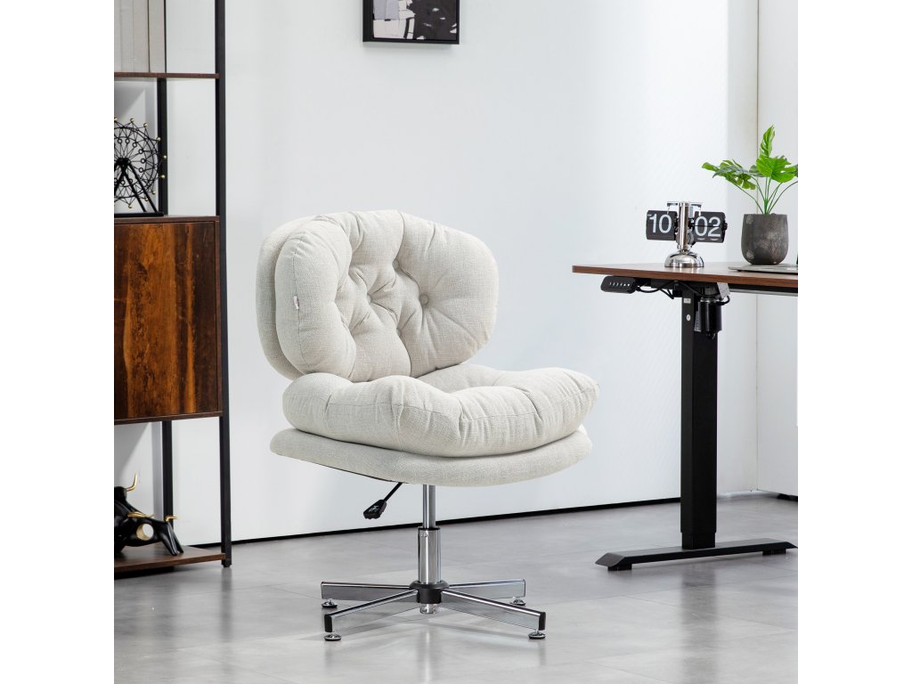 HOMCOM Kancelářská židle bez područek, pohodlná kancelářská židle s čalouněným sedákem a nastavitelnou výškou, krémově bílá