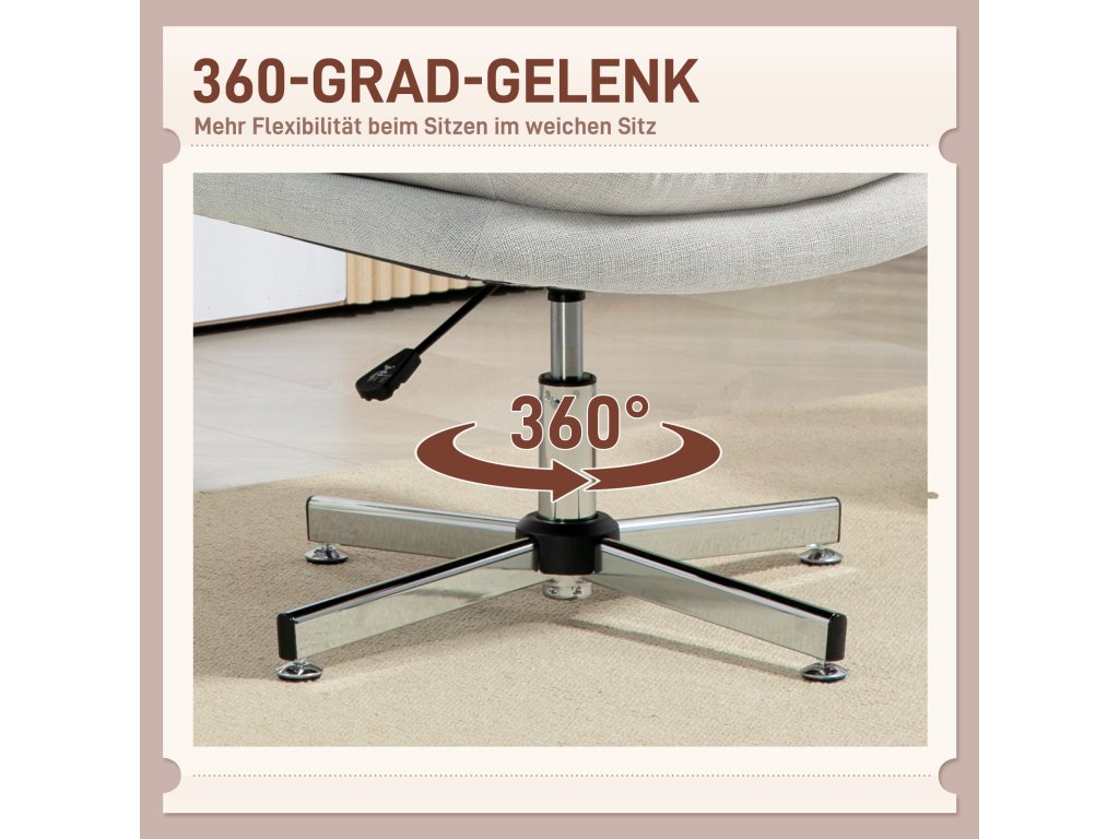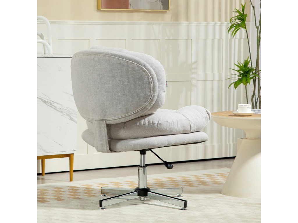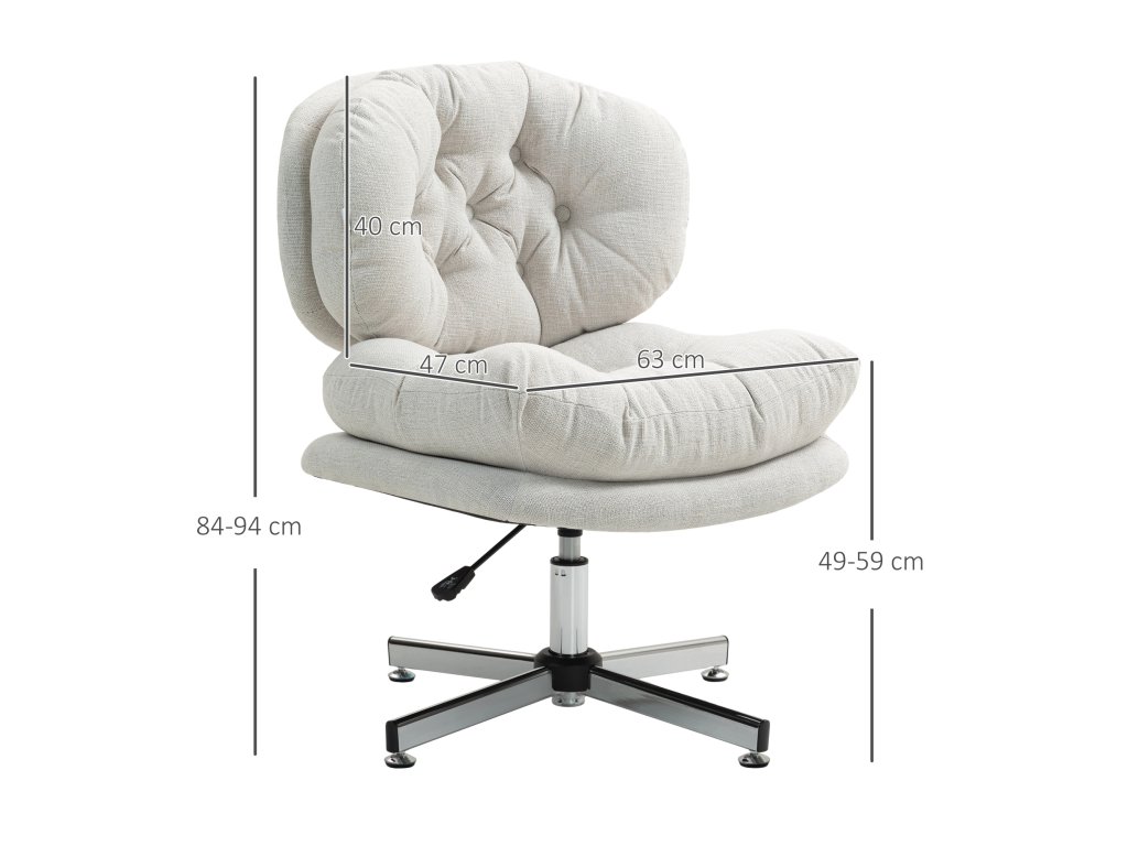 Vyzkoušejte pohodlí kancelářské židle HOMCOM s 18,5 cm silnou pěnovou výplní a 15 cm silným opěrákem, potaženým prodyšnou látkou v lněném vzhledu. Prohnuté opěradlo s prošíváním knoflíků dodává židli eleganci a sofistikovanost. Výšku lze snadno nastavit díky bezpečné plynové tlakové pružině třídy 3. Tato otočná židle je ideální ke každému počítačovému stolu nebo pracovnímu místu a je nezbytným doplňkem vašeho pracoviště.