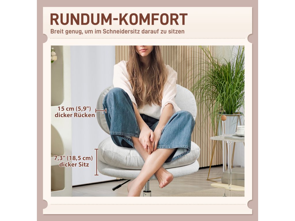 - Pohodlné sezení: Vychutnejte si měkké pohodlí sedáku s pěnovým polstrováním o tloušťce 18,5 cm a opěradla o tloušťce 15 cm, obojí čalouněné prodyšnou látkou lněného vzhledu