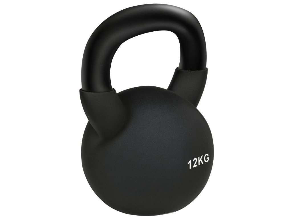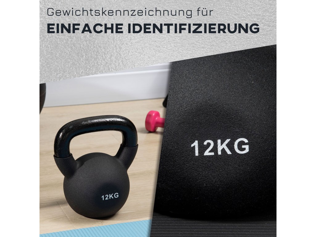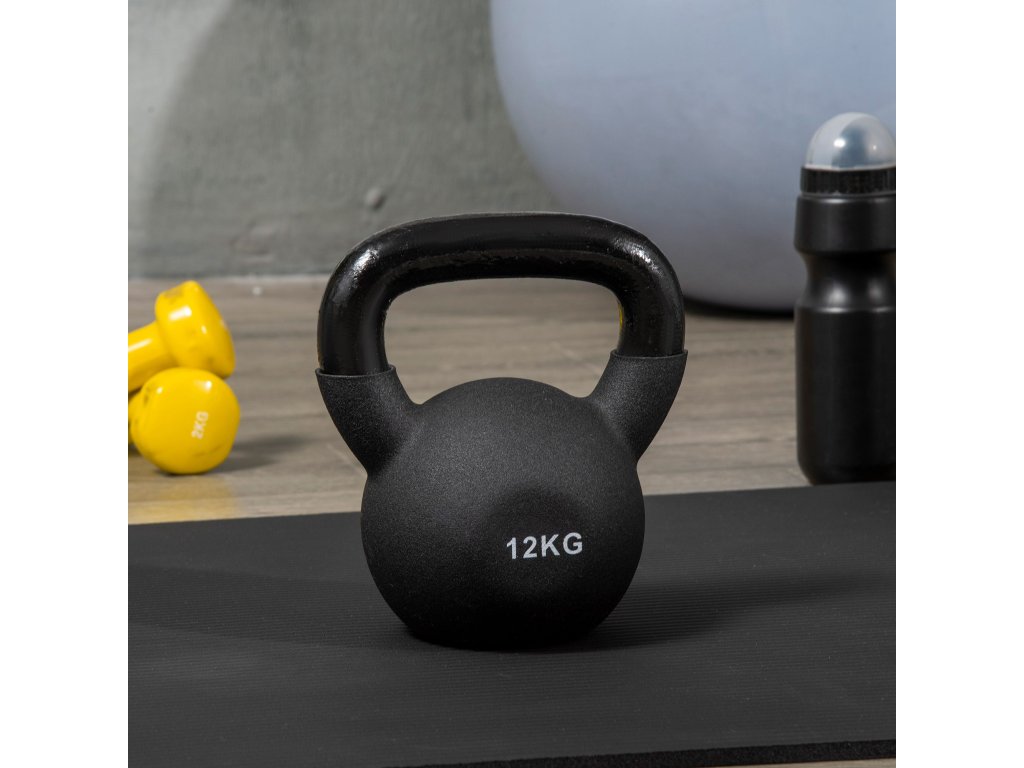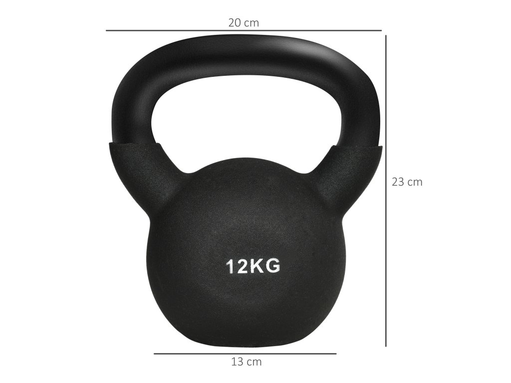 HOMCOM Kettlebell, kulová činka, 12 kg, s plastovým povrchem, ocel, černá 20 x 13 x 22 cm