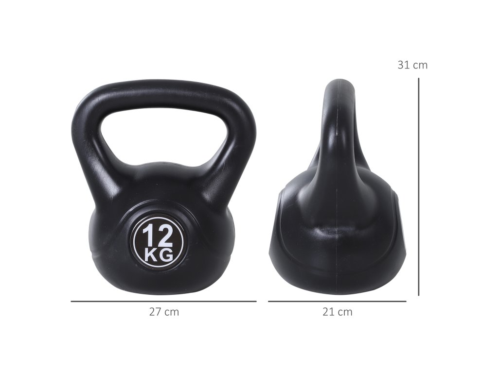 HOMCOM Kettlebell Ball Dumbbell 12 kg Hmotnostní činka plněná pískem pro začátečníky Black
