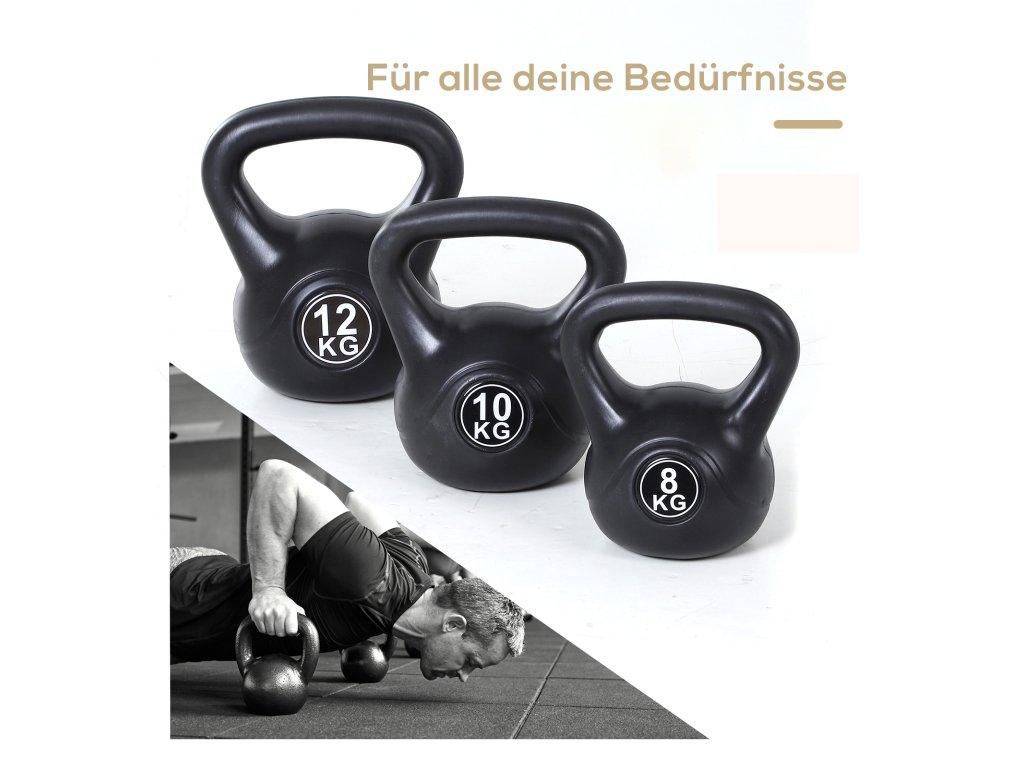 - ✔ K dispozici jsou závaží o hmotnosti 8 kg, 10 kg a 12 kg pro různé požadavky na sílu