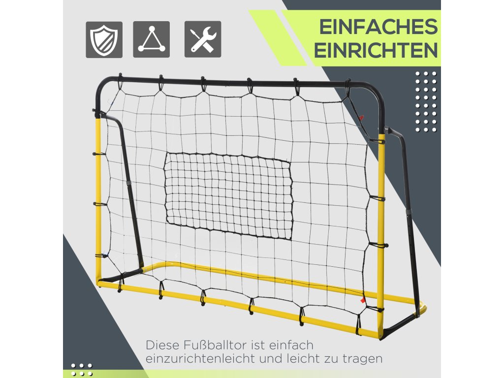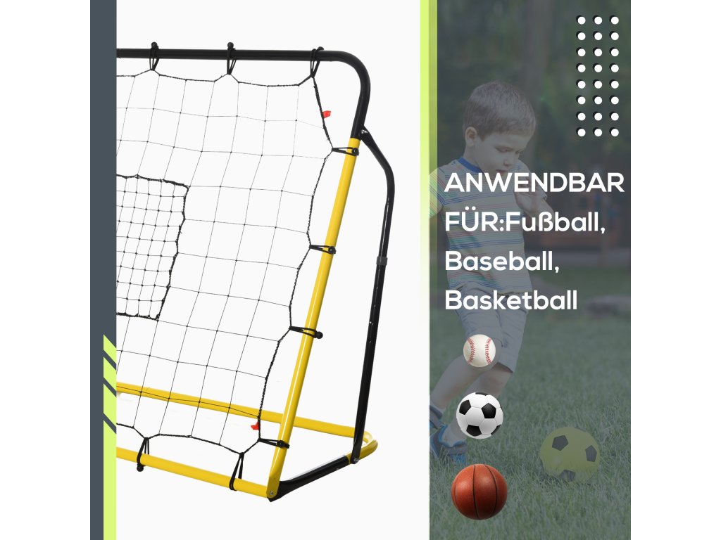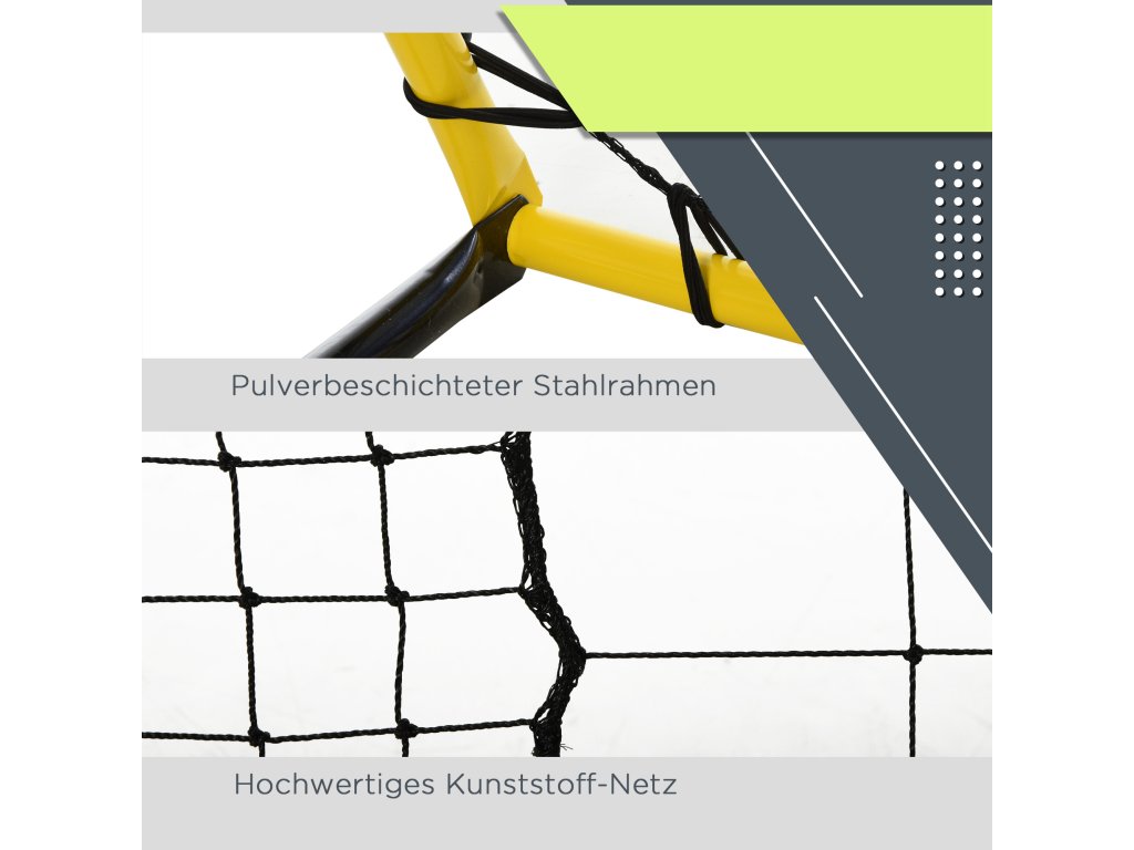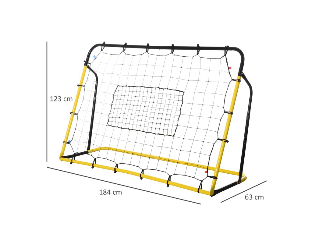 HOMCOM Kickback fotbalová branka Odrazová síť pro fotbal, basketbal a baseball, ocel+PE, žlutá+černá, 184 x 63 x 123 cm