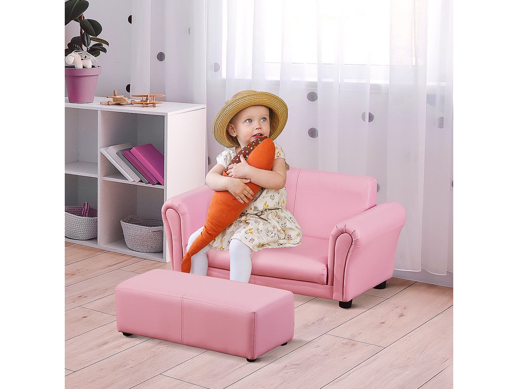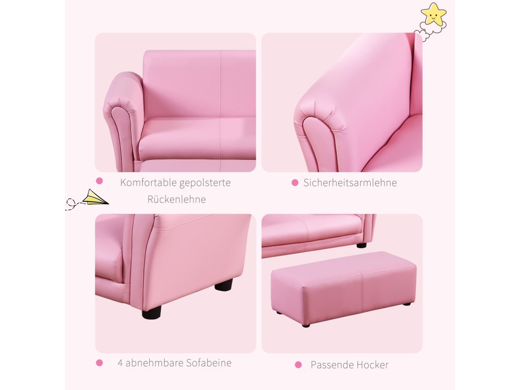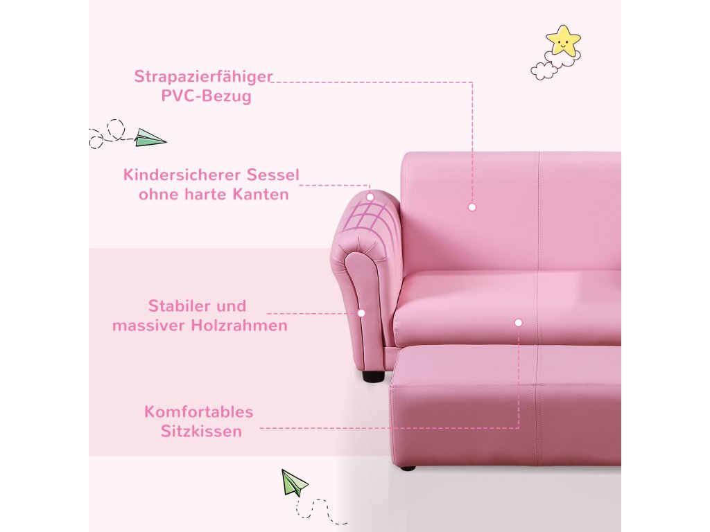 HOMCOM Kindersessel mit Fußhocker, Kindercouch mit Hocker, Kindersofa, Sofa Sessel, Rosa 83 x 42 x 41 cm