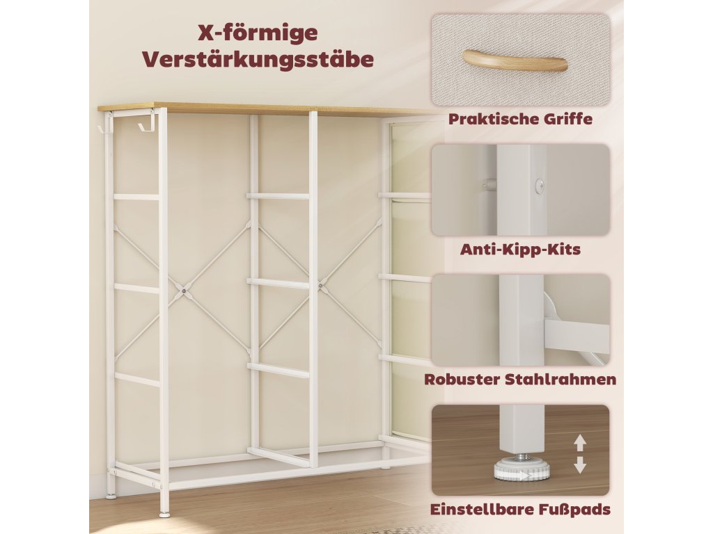 - Snadno použitelné látkové zásuvky: Sklopné zásuvky s praktickými úchyty komody do předsíně lze hladce vysunout a zasunout, takže ukládání, úklid nebo sezónní změny jsou hračkou