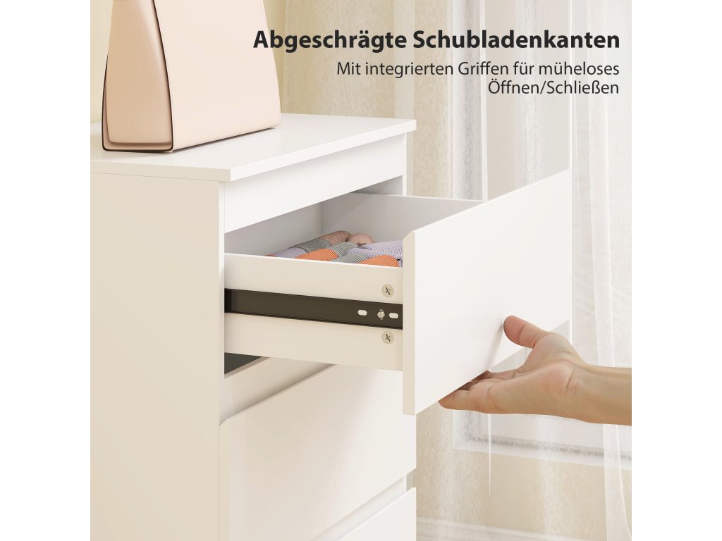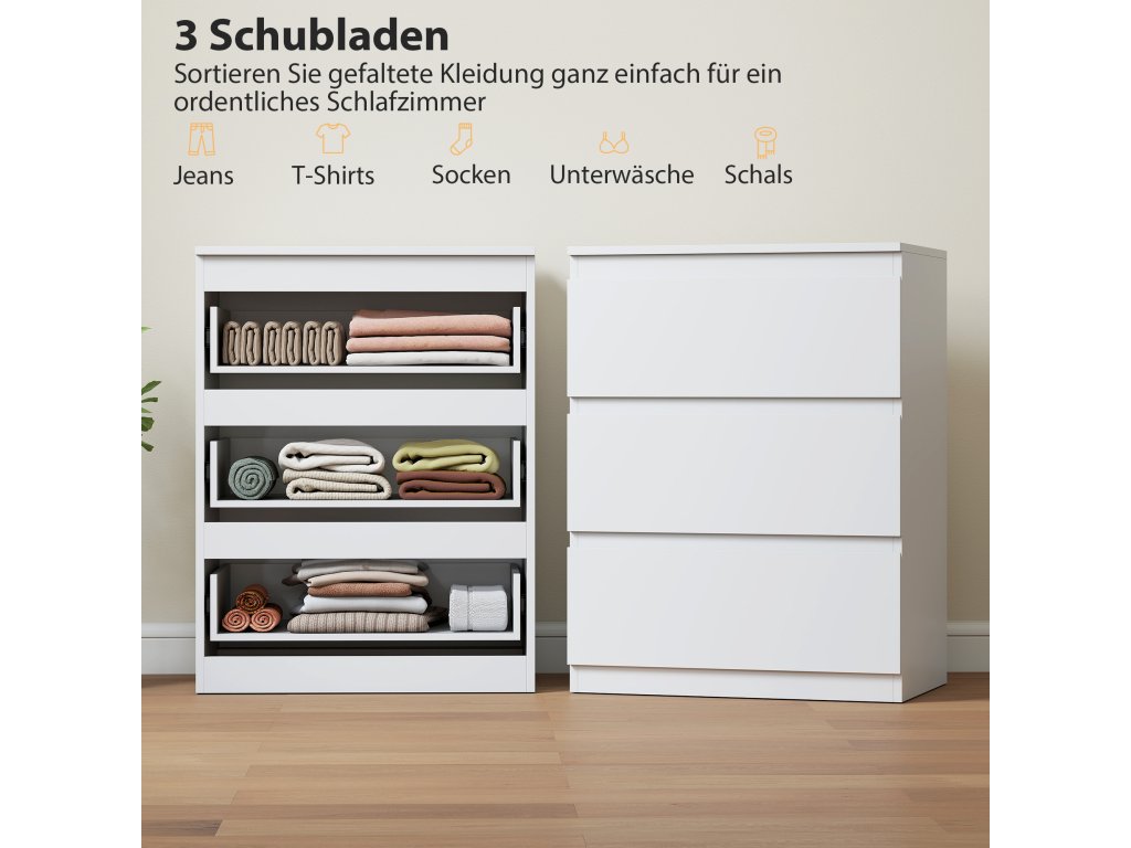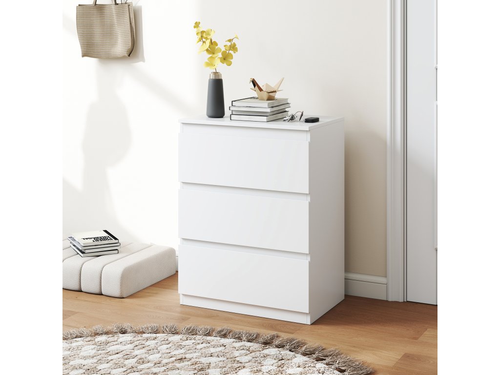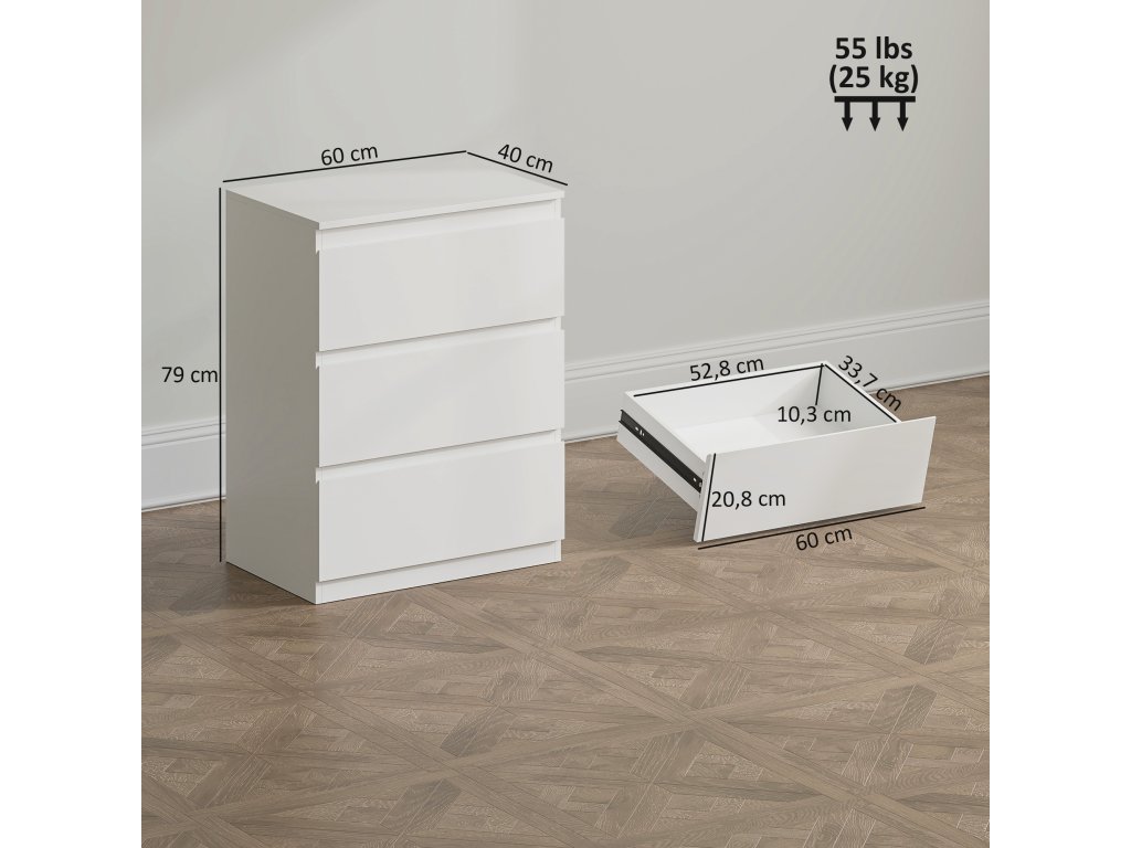 Začněte svůj den organizovaně a bez námahy: komoda HOMCOM bez úchytek uspořádá oblečení a doplňky ve třech hladce se pohybujících zásuvkách. Zkosené hrany usnadňují otevírání. Její čistě bílé provedení působí moderně a svěže a skvěle se hodí do ložnic, předsíní, obývacích pokojů nebo pokojů pro hosty a zajistí klid a pohodlí v každodenním životě.