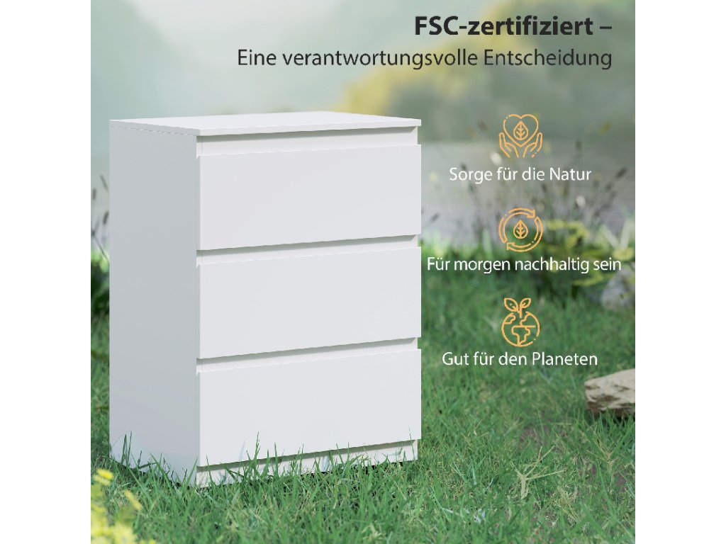 - Bezpečná, stabilní a udržitelná: Tato komoda je vyrobena z dřevotřískových desek s certifikátem FSC, je vybavena sadami proti překlopení a protiskluzovými podložkami pod nohy a nabízí udržitelnou bezpečnost a stabilitu - je zodpovědně vyrobena pro bezstarostný domov