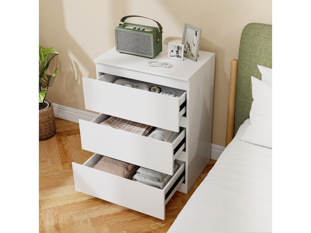 - ✔ Tři zásuvky zásuvkové skříně poskytují organizovaný úložný prostor pro oblečení, doplňky a nezbytné věci