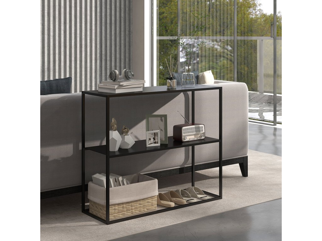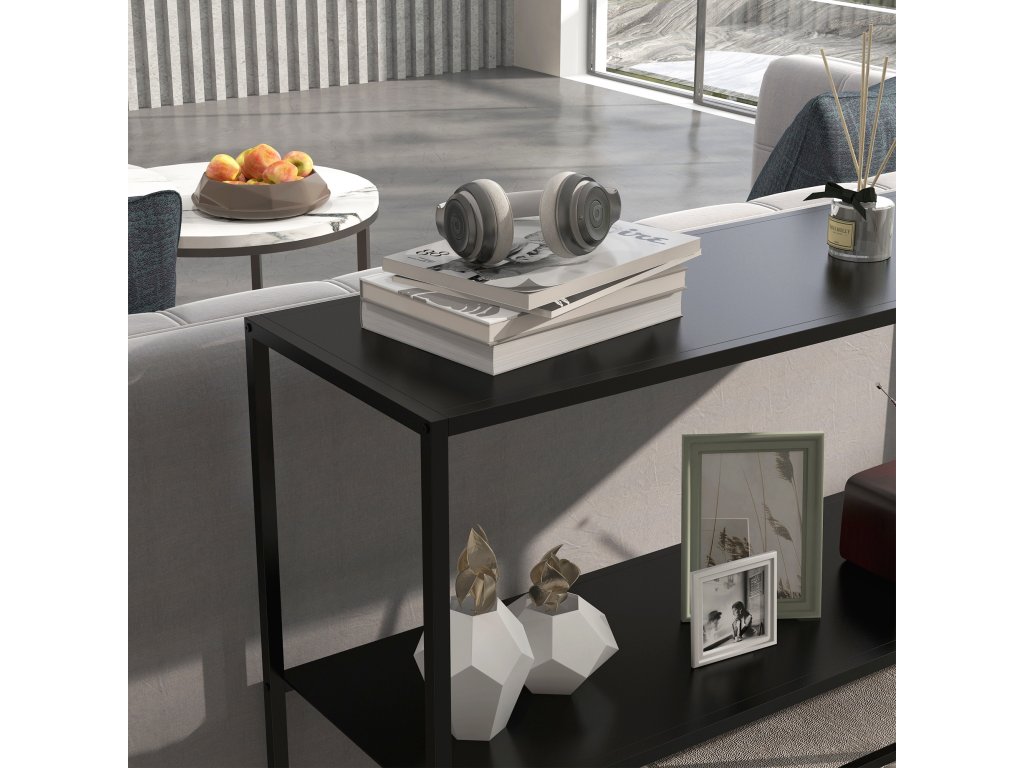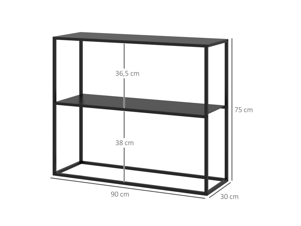 HOMCOM Konzolový stolek, příborník, 2 police, práškově lakovaná ocel, 90 x 30 x 75 cm, černá barva