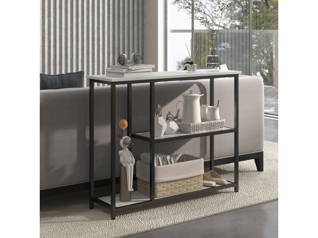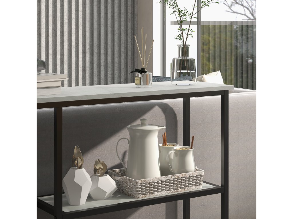 HOMCOM Konzolový stolek v industriálním designu, 2 police, mramorový vzhled, černá + bílá
