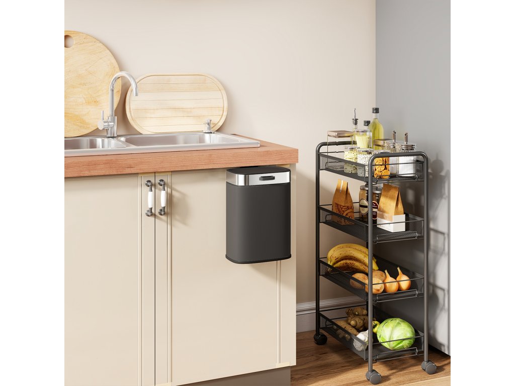 - Kroužek pro uchycení sáčku: Integrovaný kroužek v tomto kuchyňském odpadkovém koši bezpečně zajistí váš sáček na odpadky, čímž se sníží nepořádek a usnadní každodenní práce.