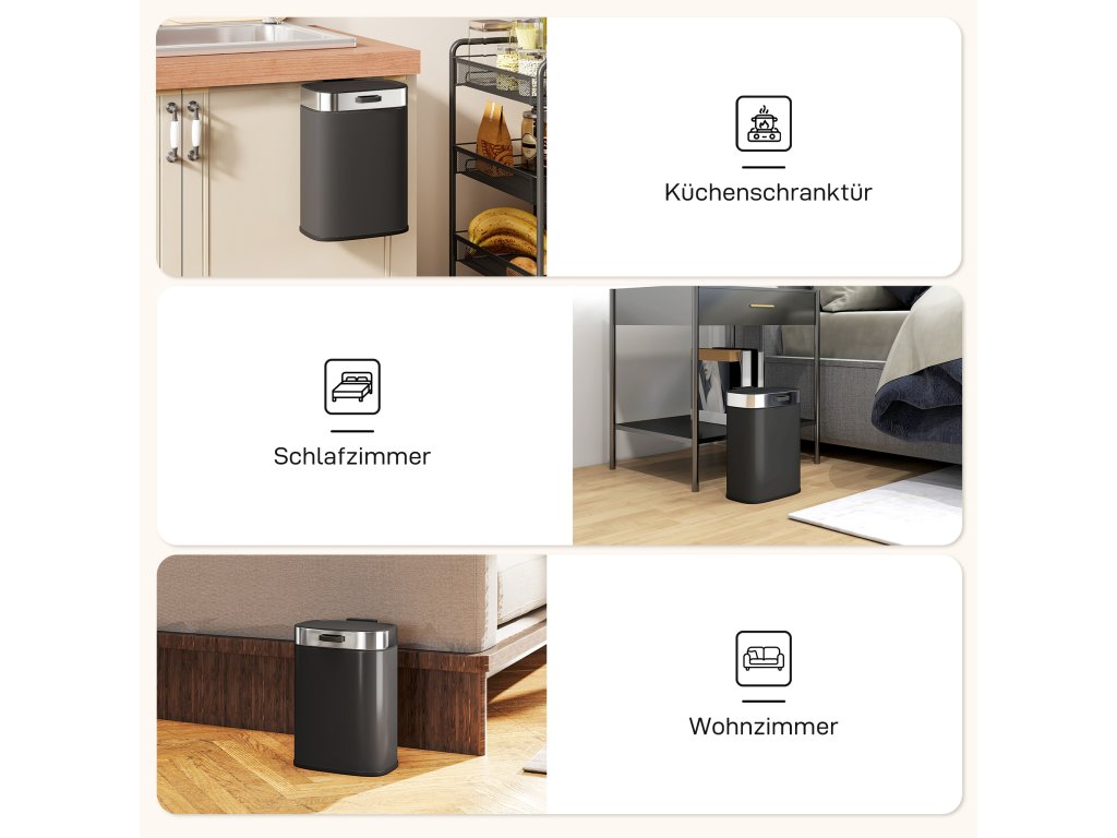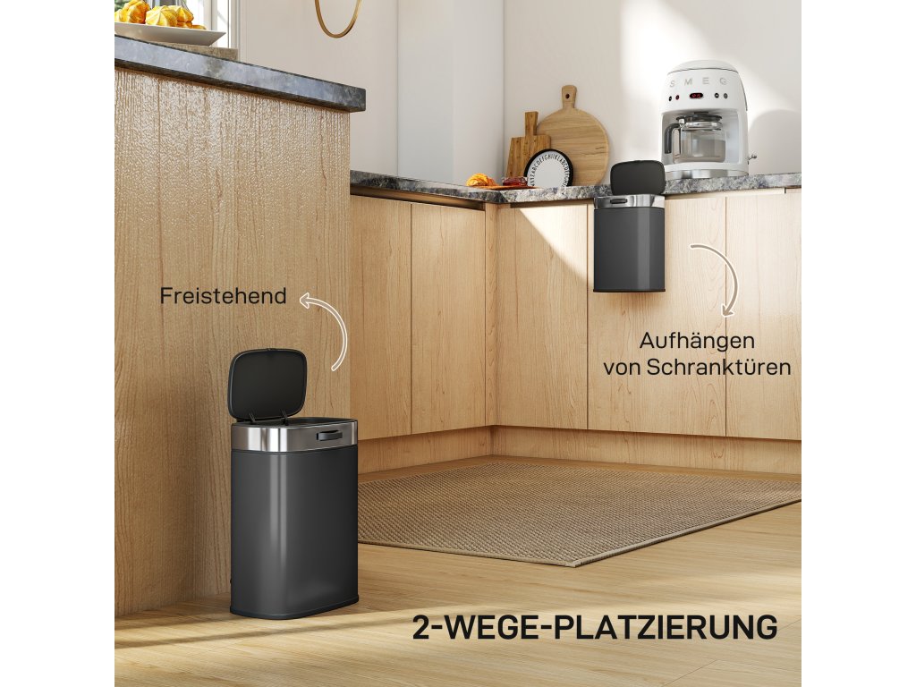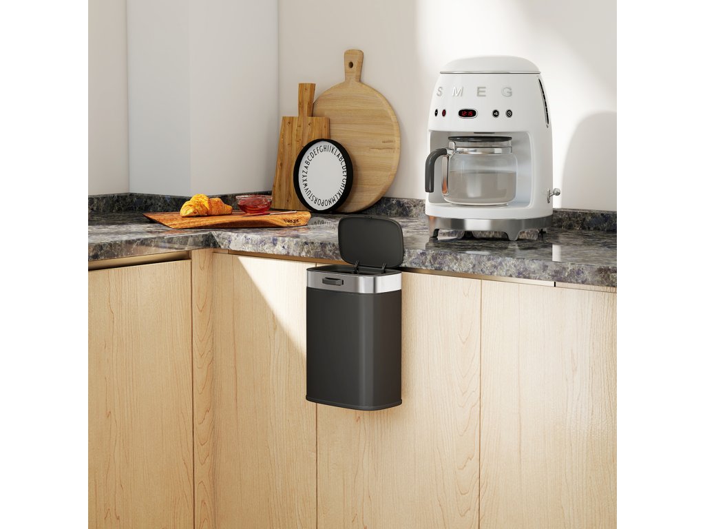 - Dvojí univerzálnost umístění: Použijte jej jako volně stojící odpadkový koš nebo jej připevněte na dvířka kuchyňské linky o tloušťce do 2,5 cm. Tento kompaktní odpadkový koš o objemu 5 litrů šetří místo a udržuje pořádek v kuchyních, kancelářích, ložnicích, pracovnách nebo malých prostorách.
