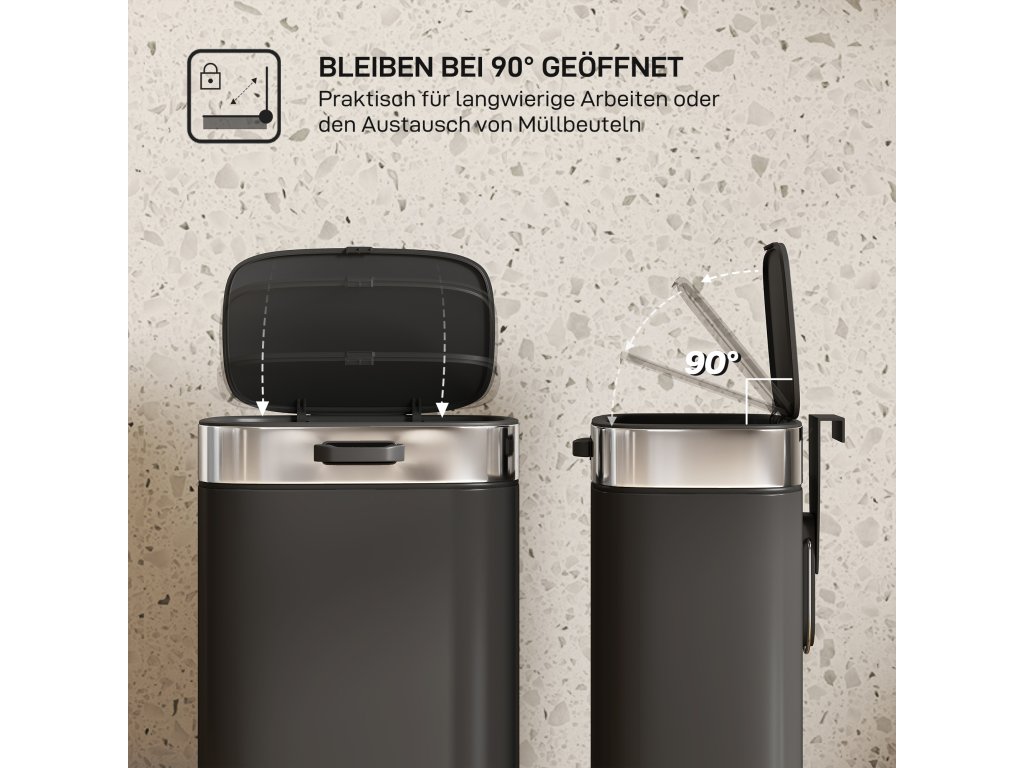- ✔ Víko koupelnového odpadkového koše zůstává otevřené, což usnadňuje více činností při přípravě jídla