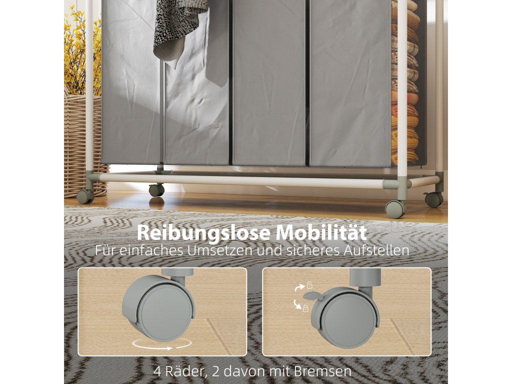 - Mobilita bez námahy: Díky čtyřem hladce posuvným kolečkům, z nichž dvě mají aretační brzdy, se s tímto pojízdným košem na prádlo snadno manévruje a v případě potřeby jej lze stabilně umístit.