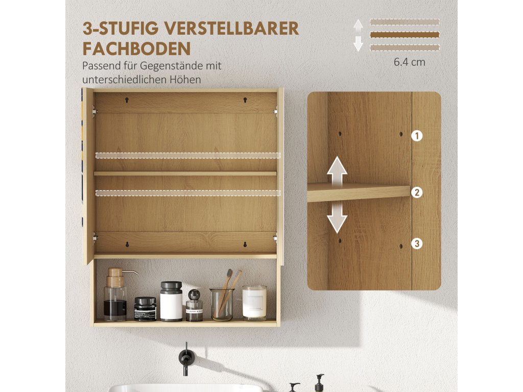 Leze vám chaos v koupelně a ranní boj o toaletní potřeby na nervy? Koupelnová skříňka se zrcadlem HOMCOM vnese do vašeho chaosu pořádek. Nastavitelné police koupelnové skříňky uklidí všechen nepořádek, zatímco zrcadlová dvířka se jemně zavírají a vytvářejí klidnou atmosféru. Začněte svůj den uvolněně a sebevědomě s touto funkční skříňkou se zrcadlem, která zlepší vaše pečovatelské rituály.